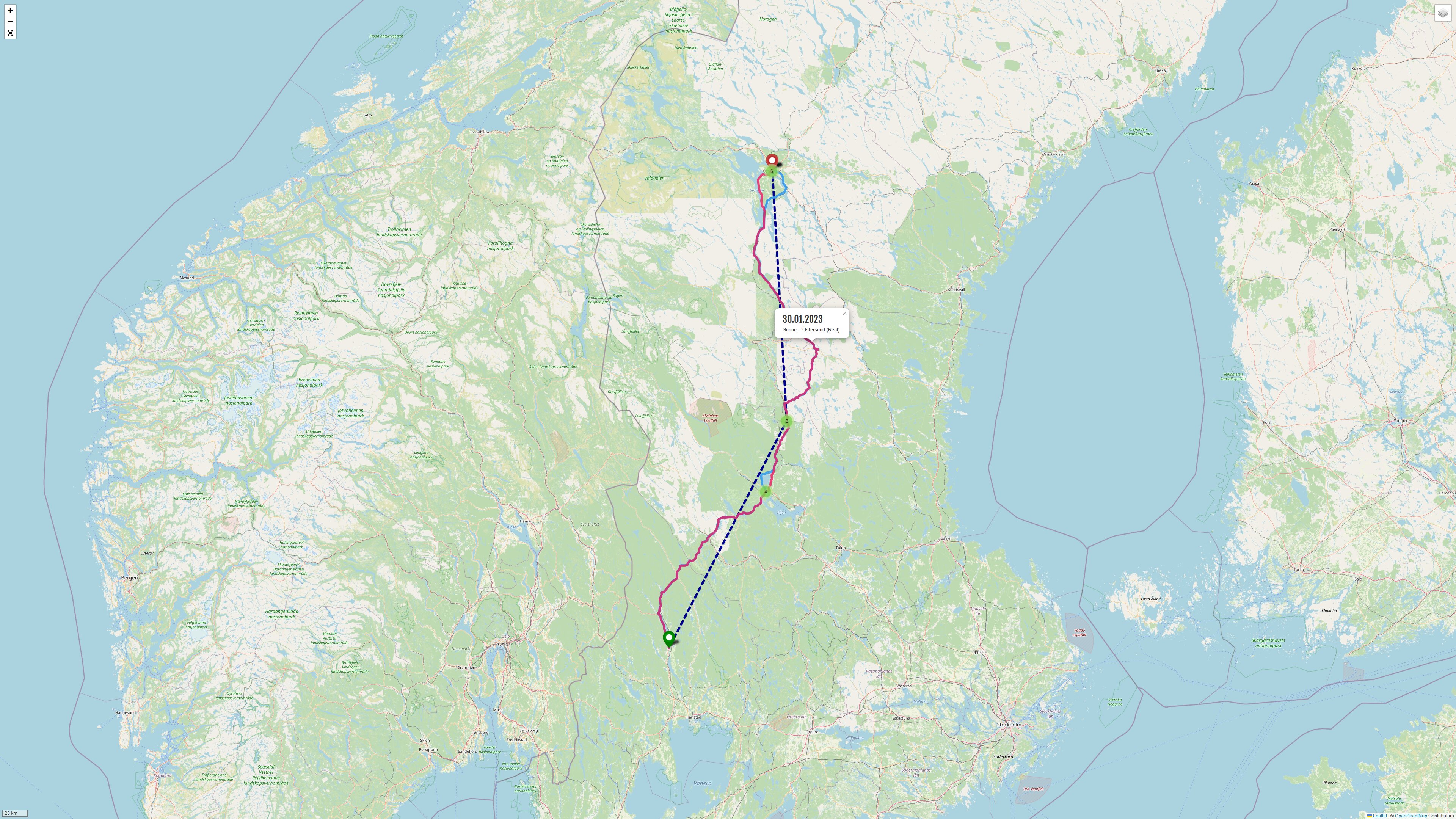 Da ich gut in der Zeit lag habe ich vor Östersund eine Abkürzung genommen, die ich vor ein paar Jahren schon mal gefahren war. Sie verkürzt den Weg zwar erheblich, aber man fährt auch auf sehr kleinen und schmalen Strecken, schneller ist man also vermutlich nicht am Ziel, was ja eh nicht meine Absicht war. So sah ich einen schönen roten Sonnenuntergang und eine Eisstraße über einen See. Jede Menge Fahrzeuge fuhren gemächlich in größerem Abstand über den See. Schon irre. Ich glaube ich würde mir dabei, wenn ich es überhaupt wagen würde, in die H___ machen.