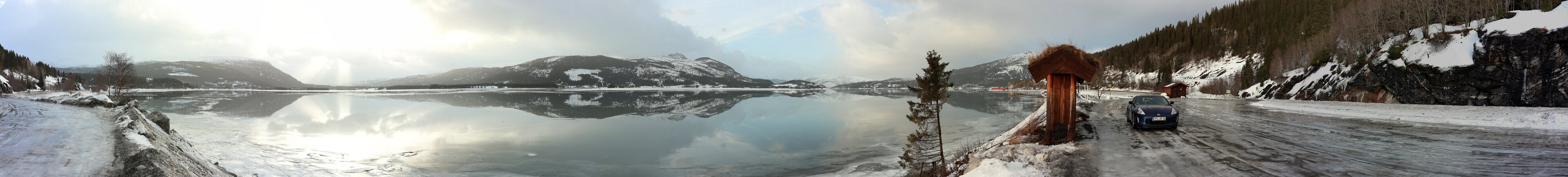 Bin ich jetzt noch chronologisch, kam jetzt der Hasenhirn-Abschnitt? Ich gebe zu Protokoll: Das Korgfjellet (643 moh) könnte ich ja dieses Mal nehmen, statt des Tunnels. Das erste Stück fährt sich deutlich besser als es letztes Jahr möglich war. Da hatte es nämlich tiefe Spurrinnen und ich kehrte um. Heute gibt es keine Spurrinnen, wenn es auch eine geschlossene Schneedecke hat und diese stark zusammen gefahren ist, es also eher eine Eisschicht ist. Diese ist aber bestens mit Split garniert und es fährt sich gut. Es geht teilweise schon ganz schön den Berg hoch, zwei Fahrzeuge begegnen mir, die Fahrer schauen sehr irritiert. Das hält mich aber nicht auf. Was mich schon eher aufhält ist, dass plötzlich und unvermittelt die Straße zu Ende ist und es auf einen großen Parkplatz geht. Da hat also das Hasenhirn gedacht, es könnte hier so einfach über den Pass fahren. Es wurde aber extra 2005 der Tunnel eröffnet, weil diese Strecke so gefährlich war.