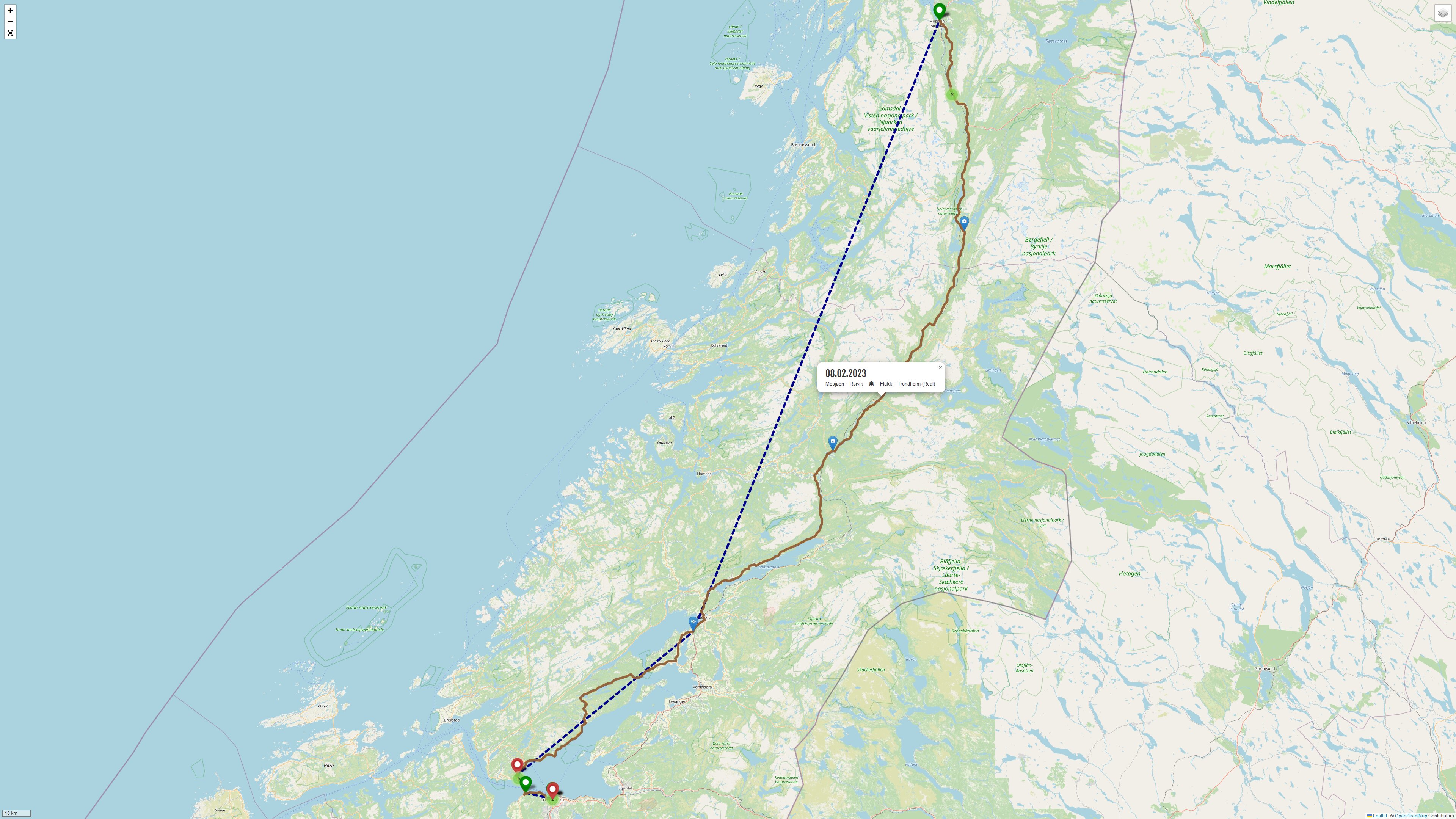 Im weiteren Verlauf soll es dieses Mal eine etwas andere Routenführung geben, zumindest für den letzten Abschnitt vor Trondheim, der nicht als besonders schön in Erinnerung geblieben ist. So geht es dann nach Steinskjer von der [E6] runter auf die [761], den „Den Gyldene Omvei“, also „Den Goldenen Umweg“. Er beinhaltet auch eine Fähre von Rørvik nach Flakk, die Überfahrt dauert 26 Minuten, die Fähre verkehrt selbst Abends unter der Woche alle halbe Stunde, bzw. halt da muss ich noch mal recherchieren, es gibt eine A-ferge, B-ferge und C-ferge, kann sein, dass die B-ferge im Winter gar nicht operiert, von der C-ferge ganz zu schweigen. Dummerweise steht das auf dem Fahrplan nicht drauf. An der Stelle muss man wieder mal feststellen, dass Fahrpläne in der Regel echt, also wirklich, einfach nur <piiiiiiiiiiep> sind. In Trondheim habe ich mal wieder das „City Living Schøller Hotel“ gebucht.