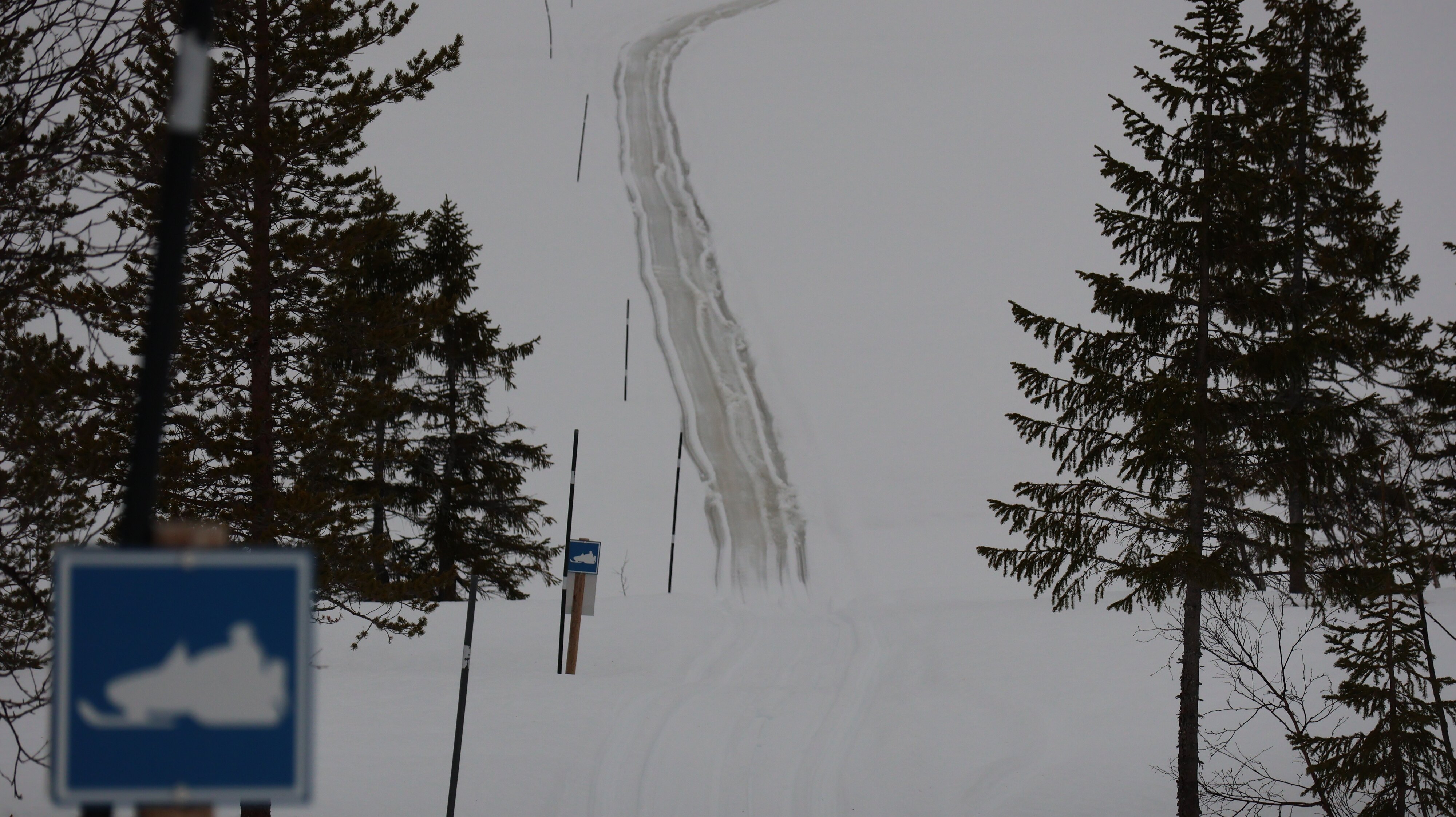 Nach Steinskjer ging es dann von der [E6] runter auf „Den Gyldene Omvei“. Die Straße bin ich noch nie gefahren. Sie schlängelt sich so durch die Gegend, erst mal nichts besonders spektakuläres, aber auf jeden Fall eine schöne Abwechslung. Die erste Überraschung ist die sehr imposante „Skarnsundbrua“. Dann geht es etwas am Fjord entlang, Schnee ist nur noch wenig zu sehen, auf Meereshöhe. Dann biegt die Straße wieder von der Küstenlinie ab. Und sie steigt und steigt und steigt. Und obwohl es +4 °C hat liegt eine leichte Schneedecke auf der Straße, die sich durchaus angenehm fahren lässt. Laut Navi war ich an einem Punkt 275 Meter ü.d.M. hoch, man hatte aber das Gefühl im Gebirge zu sein. Alleine deswegen hatte sich der „goldene Umweg“ schon gelohnt.