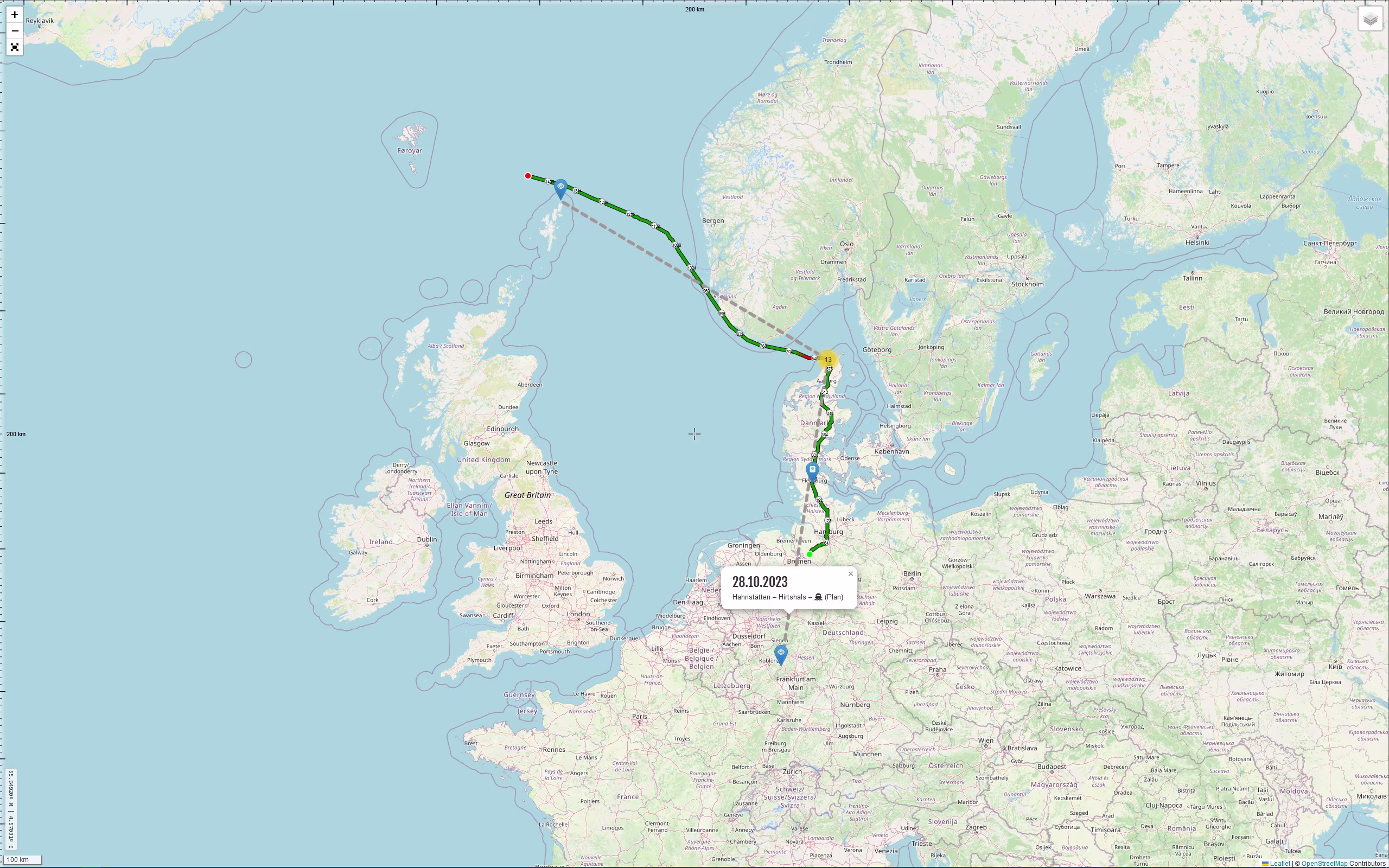 Tja, das wird schon ein ziemlich harter Ritt. 1.047,4 km am Stück. Die Fähre legt um 15 Uhr ab und man soll 1,5 Stunden vor Abfahrt an der Fähre sein. Für die Strecke werden 10:34 Stunden veranschlagt (laut Routenplanung von OSM). Also 3 Uhr Abfahrt. Wenn man nun alle in den letzten Jahren bei solchen Fahrten an den Tag gelegten Verhaltensweisen über die Wupper kippt und mal richtig, also so richtig, auf die Tube drückt, dann kann man sicherlich ein paar Stunden verkürzen. Aber, muss das sein? <grübel>