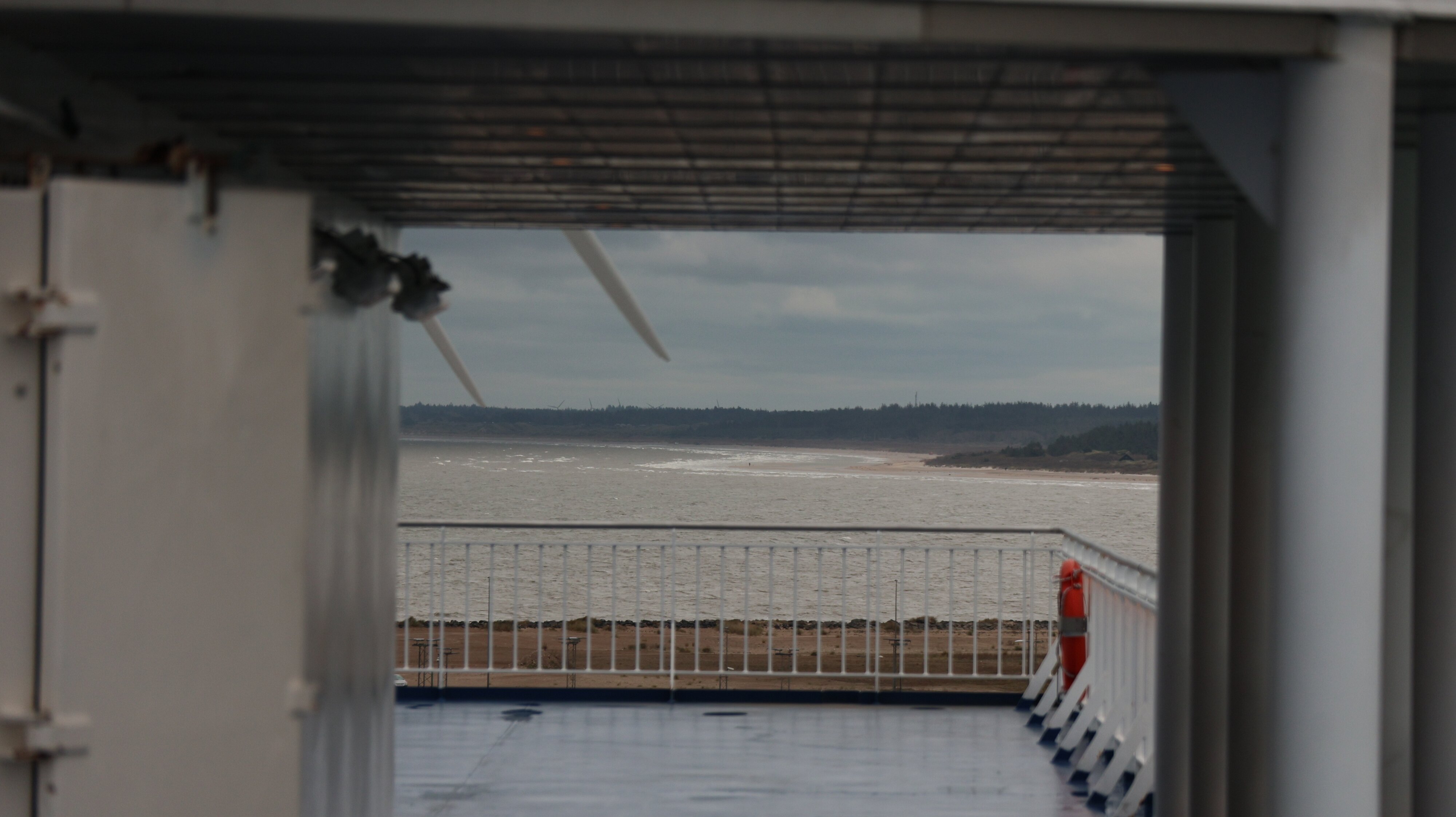 Ich merke an, die Fähre schippert immer noch recht gemütlich vor sich hin. Vermutlich wird das sehr gute Gründe haben, vllt. laufen wir so nicht unbedingt in schwerere See. Die übrigens derzeit immer noch vergleichsweise ruhig ist, man sieht fast keine Schaumkronen, geschweige denn etwas was man ernsthaft Wellen nennen könnte.
