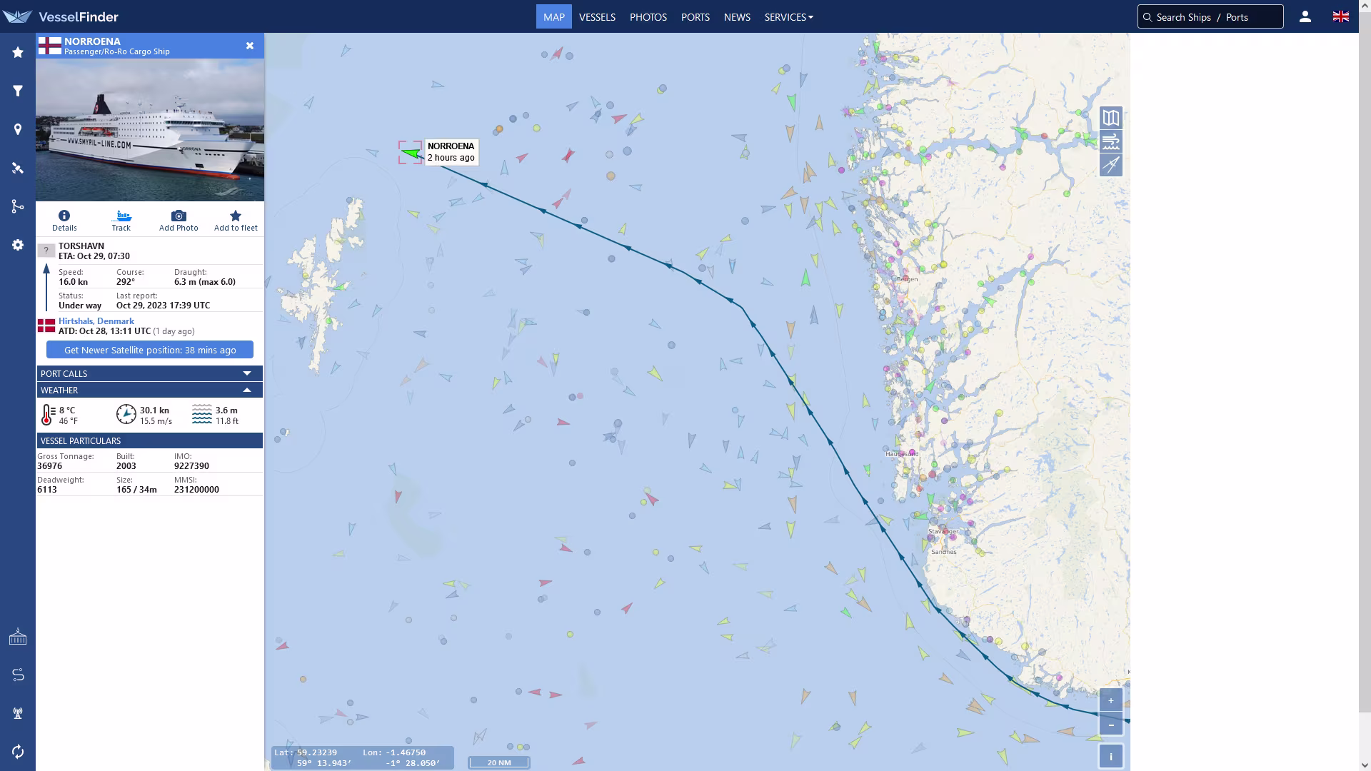 Position der MS Norröna.