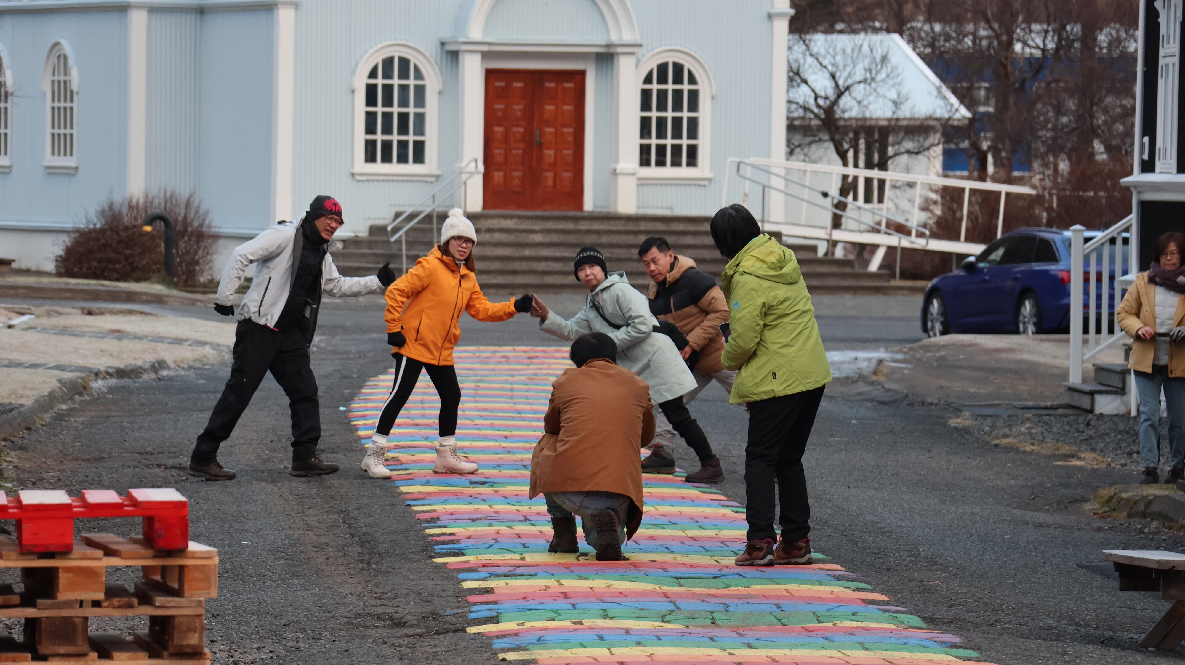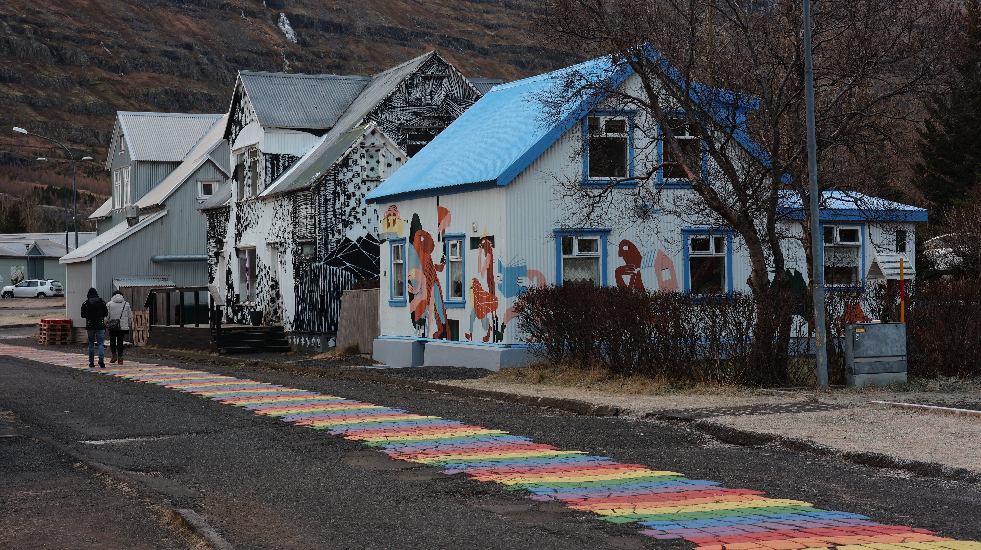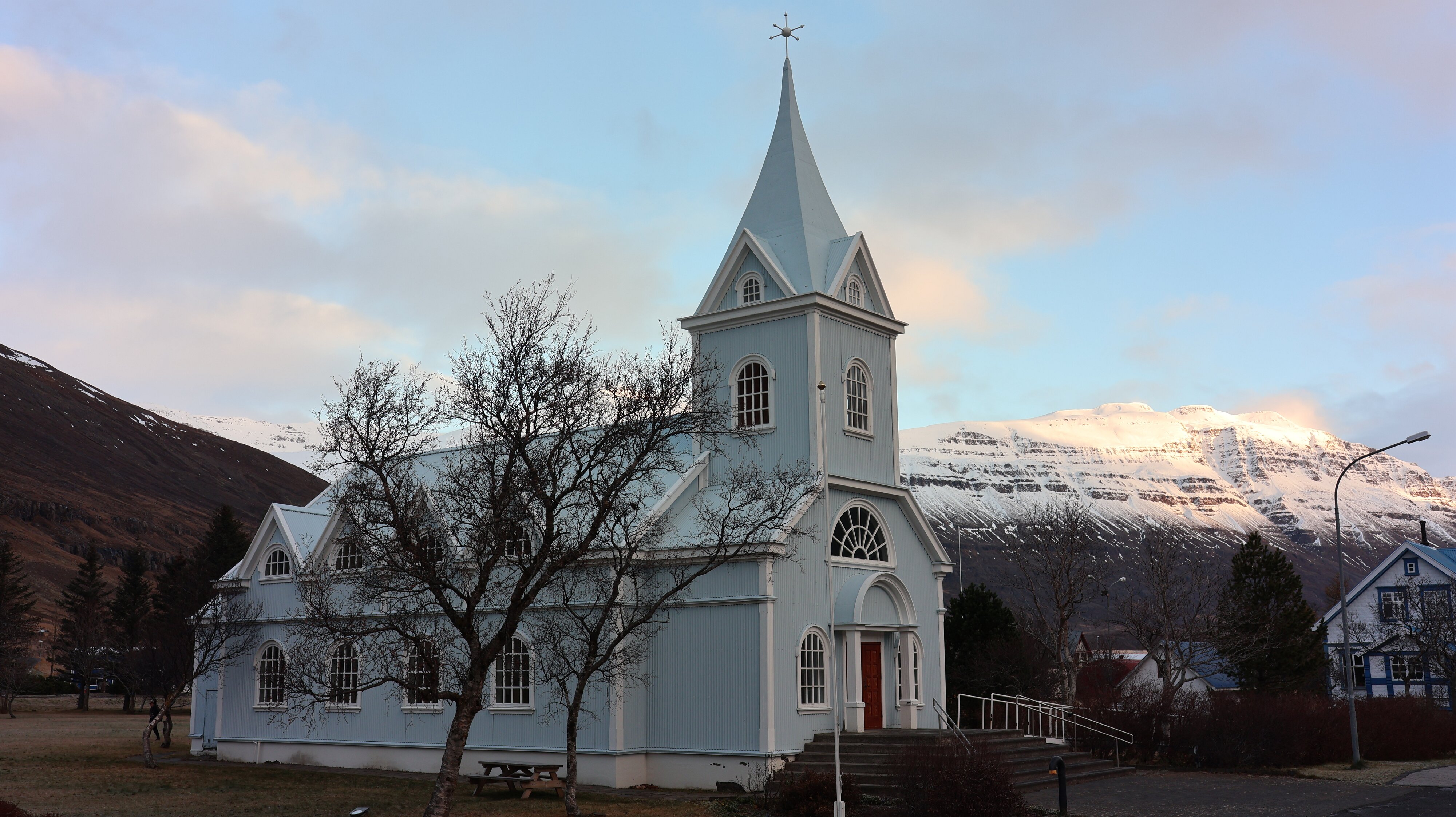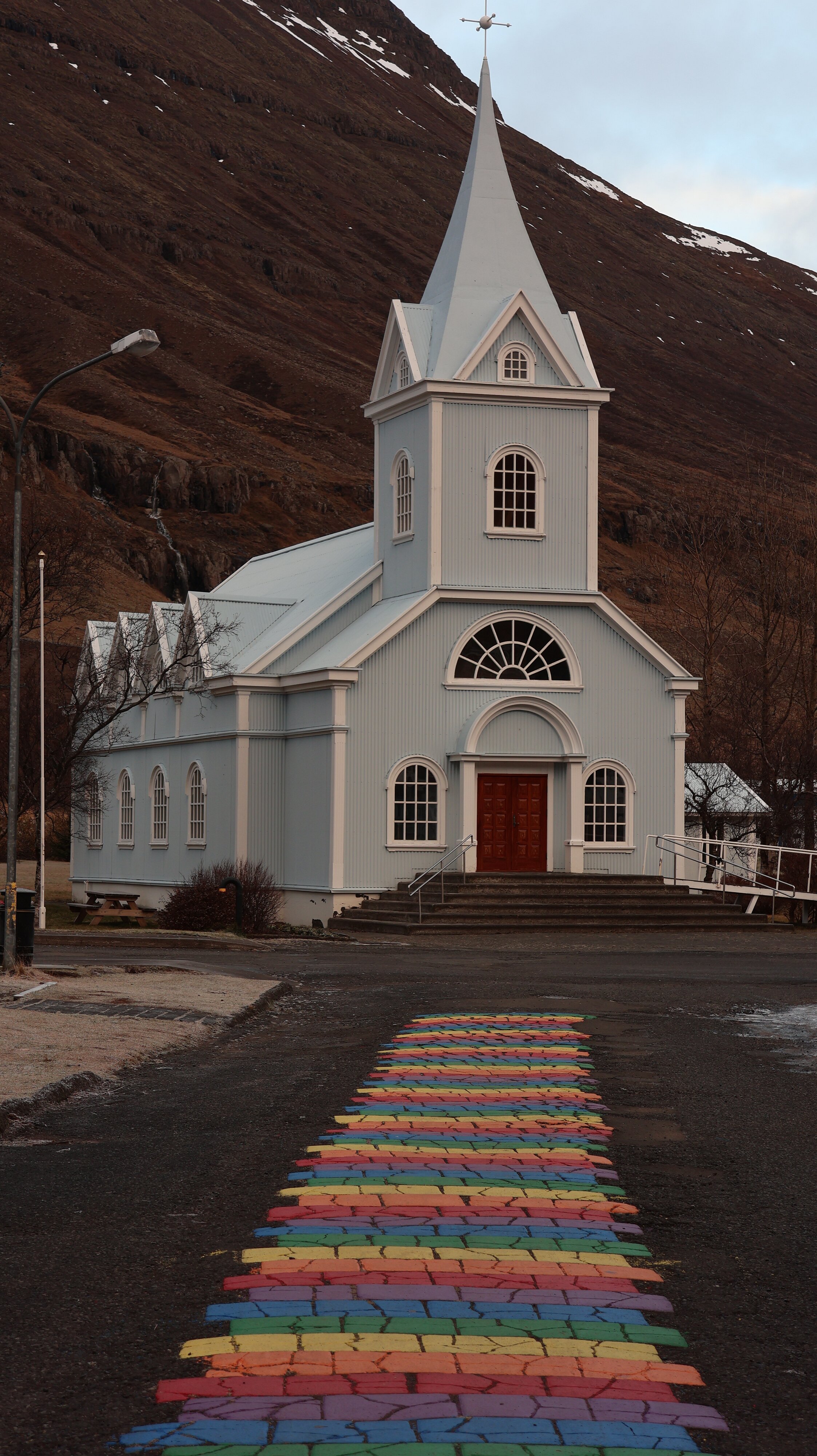 Und dann ging es auch schon in den Ort Seyðisfjörður rein. Zumindest die „Blue Church, Bláa Kirkjan, Seyðisfjarðarkirkja“ sollte abgebildet werden. Gleichzeitig tummelten sich dort auch eine Gruppe von Leuten die eigentlich genau das taten was sie immer tun. Eine Million Bilder von sich selbst schießen und jeder macht irgendwelche (aber immer die gleichen) bedeutungsschwangeren Handbewegungen. Ob die auch nur ein Foto nach Hause bringen wo keine Menschen drauf sind? Mein Ziel ist ja genau das Gegenteil, keine Menschen auf dem Bild. So hat jeder seine Präferenzen.