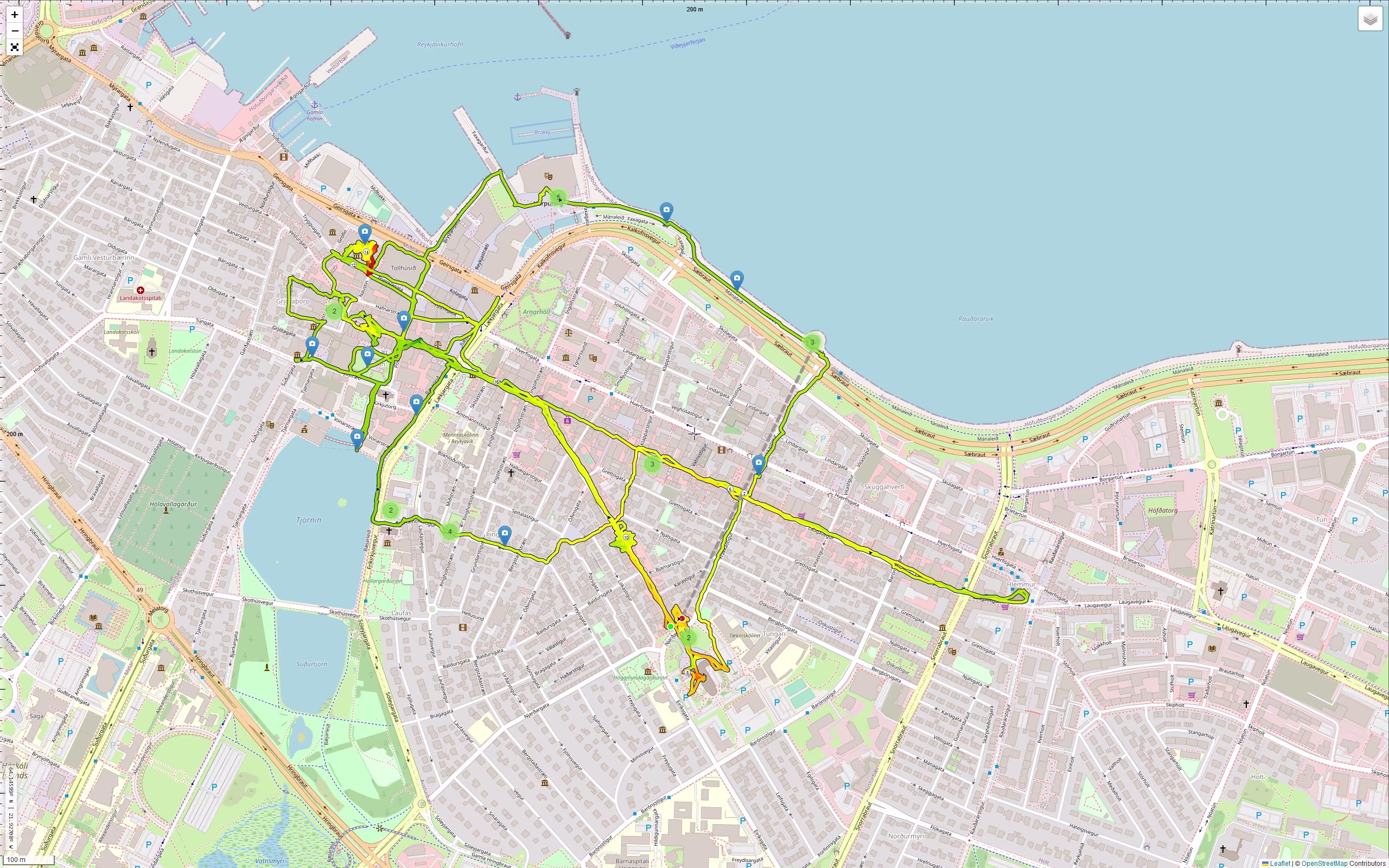 Und wer jetzt denkt, na, draußen sind aber nun schon die Bürgersteige hochgeklappt, der irrt. Die halbe Stadt ist unterwegs, es tobt der Bär, alle paar Meter hämmern aus einer anderen Kneipe die Songs. Ich gehe forschen Schrittes zum Hotel zurück, überlegend noch eine Gerstensaftkaltschale zu nehmen, während der Konzerte war ich heute enthaltsam geblieben. Aber nee, die Nacht ist spät und überhaupt, aber durstig war ich schon, man soll ja auch immer schön viel trinken. Also orderte ich mir noch ein Bierchen im Hotel, und potzblitz, es gab hier sogar welches aus dem Zapfhahn und nicht aus der profanen Dose.