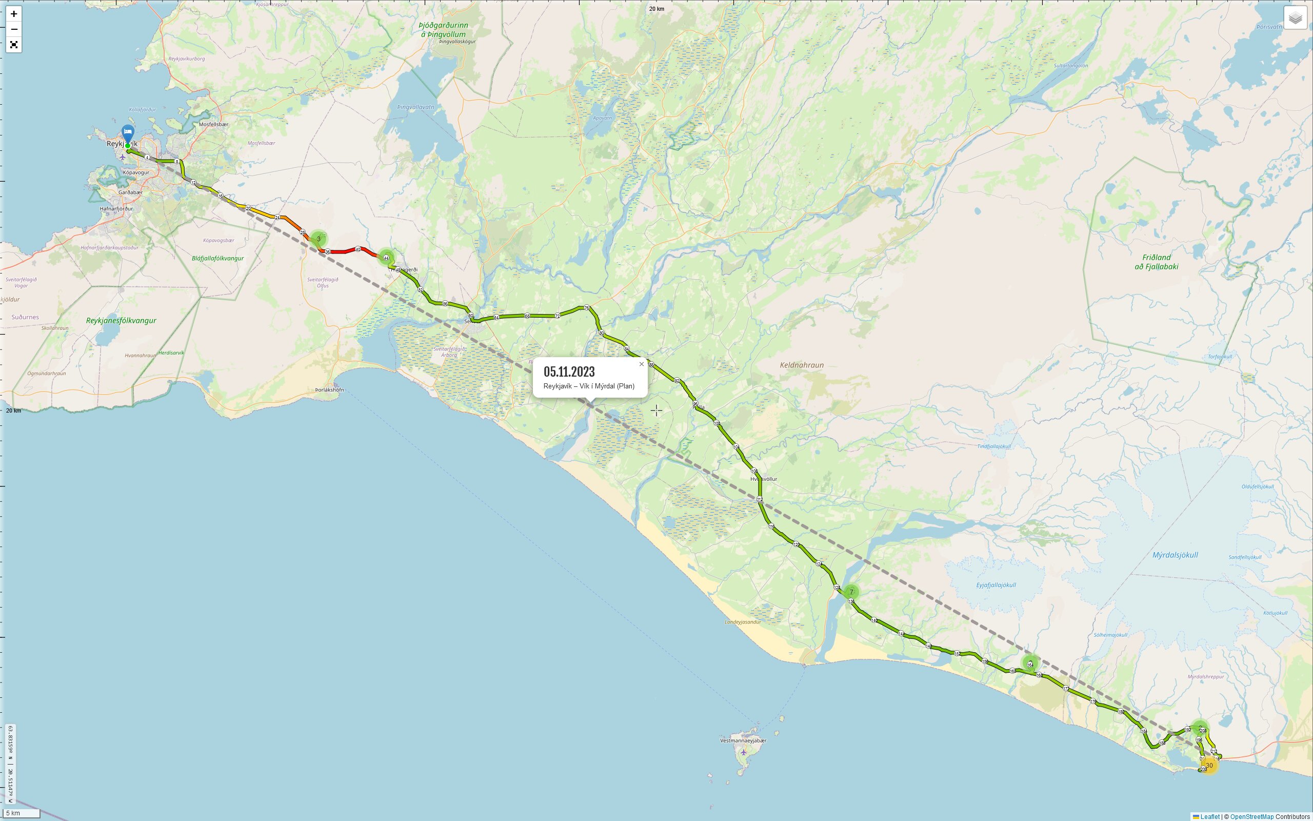 Zwar hätte ich auch die heutige Fahrt noch fast komplett mit der restlichen Tankfüllung bestreiten können, aber ich wollte die Gelegenheit nutzen und an einer Tankstelle in Reykjavík endlich mal 98er Sprit zu tanken. Aber da ist nix zu machen, das gibt es hier nicht. Mein Durchschnittsverbrauch liegt noch bei 7,7 l/100 km. Ich fahre selten 90 km/h, eher maximal 85 km/h.