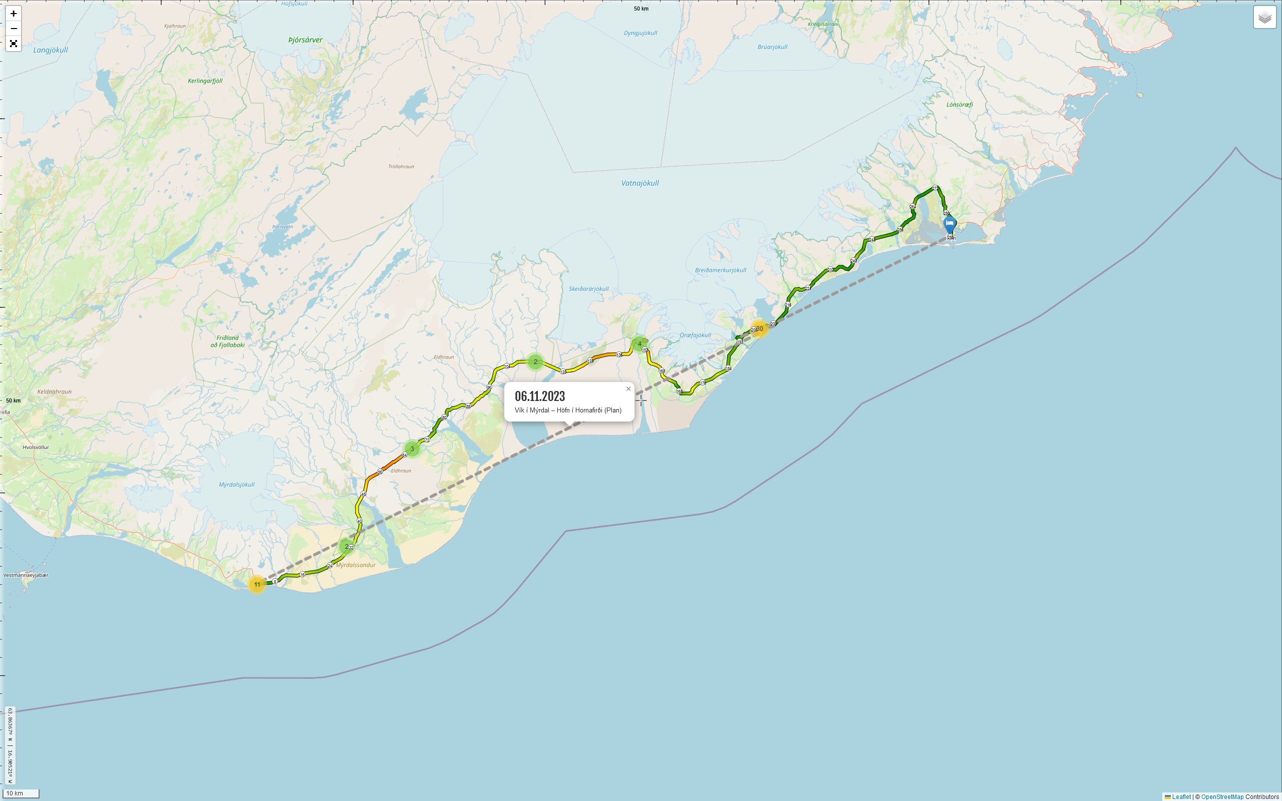 - Um nach „Höfn“ zu kommen verlässt man die [1], obwohl der Straßenverlauf an der Abzweigung anderes vermuten lässt.