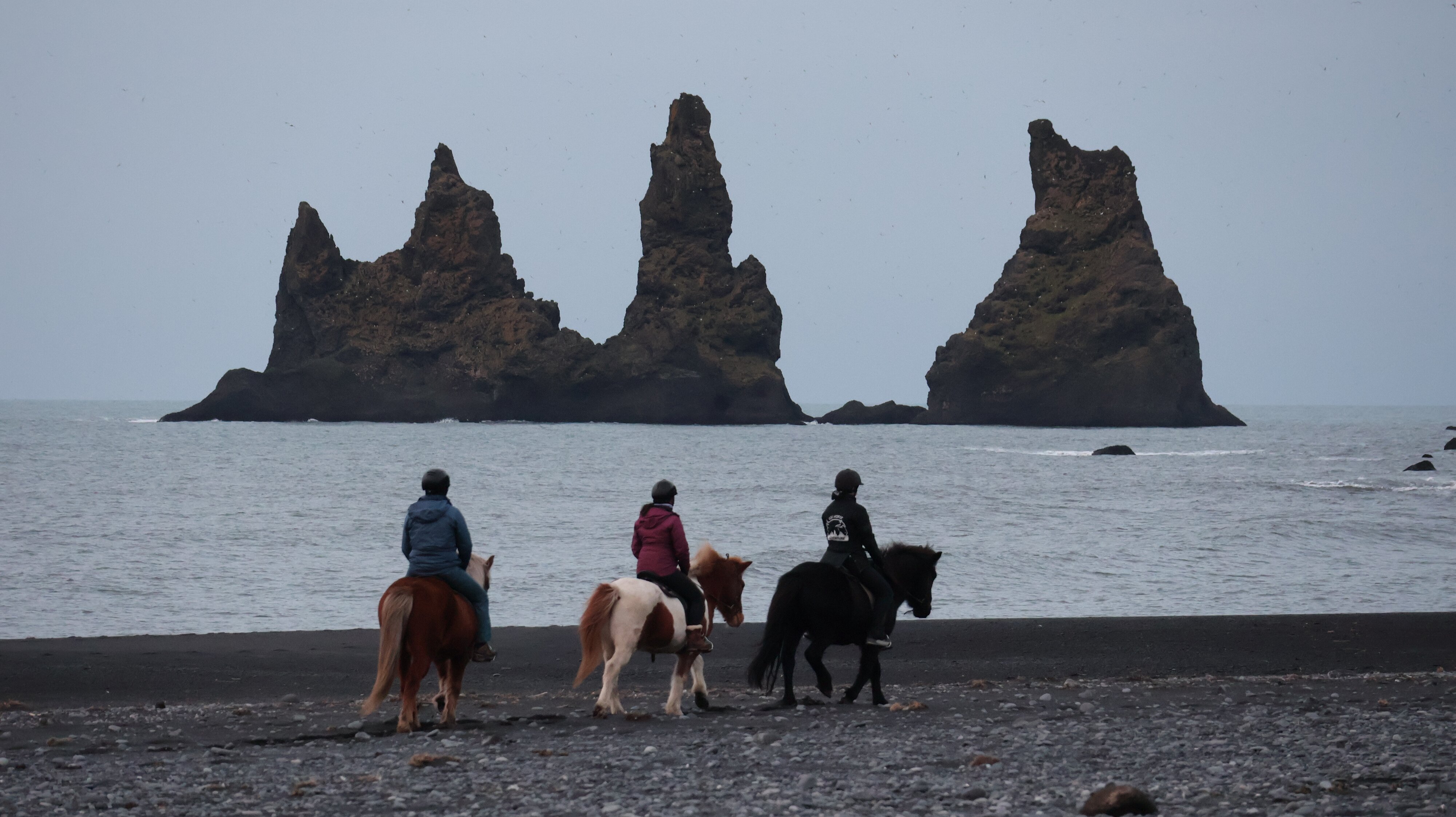 In Vík habe ich noch einen ausgedehnten Spaziergang gemacht, am ebenfalls „Black Beach“ benannten Strand, dabei war ich fast ganz alleine unterwegs. Drei Reiter sind gemütlich mit ihren Pferden dort entlang geschlurft. Bei genauem Hinsehen konnte man unzählbare Vögel am Himmel sehen, die alle irgendwie an die Felsen wollten. So bin ich erst gegen 10 Uhr wirklich los gekommen. Man fährt dann so durch die Gegend, die Dimensionen sind völlig atypisch für das was das europäische Auge so kennt. Bei fast jeder Gelegenheit muss man zwangsweise anhalten und versuchen in Bildern festzuhalten was man da eigentlich alles sieht. Aber ich kann jetzt schon sagen, die Bilder fangen das nicht ein, das ist nicht möglich, man muss es mit eigenen Augen gesehen haben.