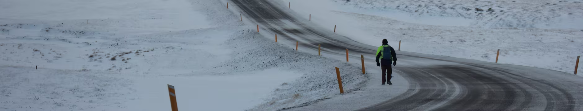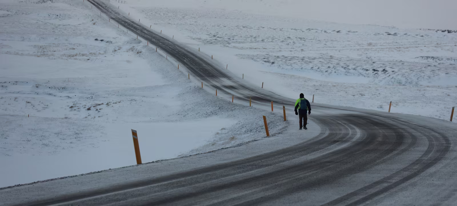 Und dann, folgte das Abenteuer, der Adrenalinkick bis in die letzte Haarspitze. Was aber zunächst nicht danach aussah. Am Ortsausgang von Egilsstaðir zeigte die Tafel -3 °C an und sonst nichts gravierendes. OK dachte ich, dann ist ja alles im grünen Bereich. Vor mir fuhr ein LKW und dahinter ein PKW. Die Straße war frei von Schnee oder Matsch. Es kommen die ersten Kehren, alles läuft prima. Dann kommt der erste Matsch, auch noch alles gut. Der Matsch geht in Schnee über, alles OK. Dann kommen ein paar Schneeverwehungen, da muss man schon gucken wo man lang fährt. Die linke Fahrspur, wo keiner fährt, ist fast komplett frei. Der PKW vor mir fährt dort, also mache ich das auch. Alles läuft.