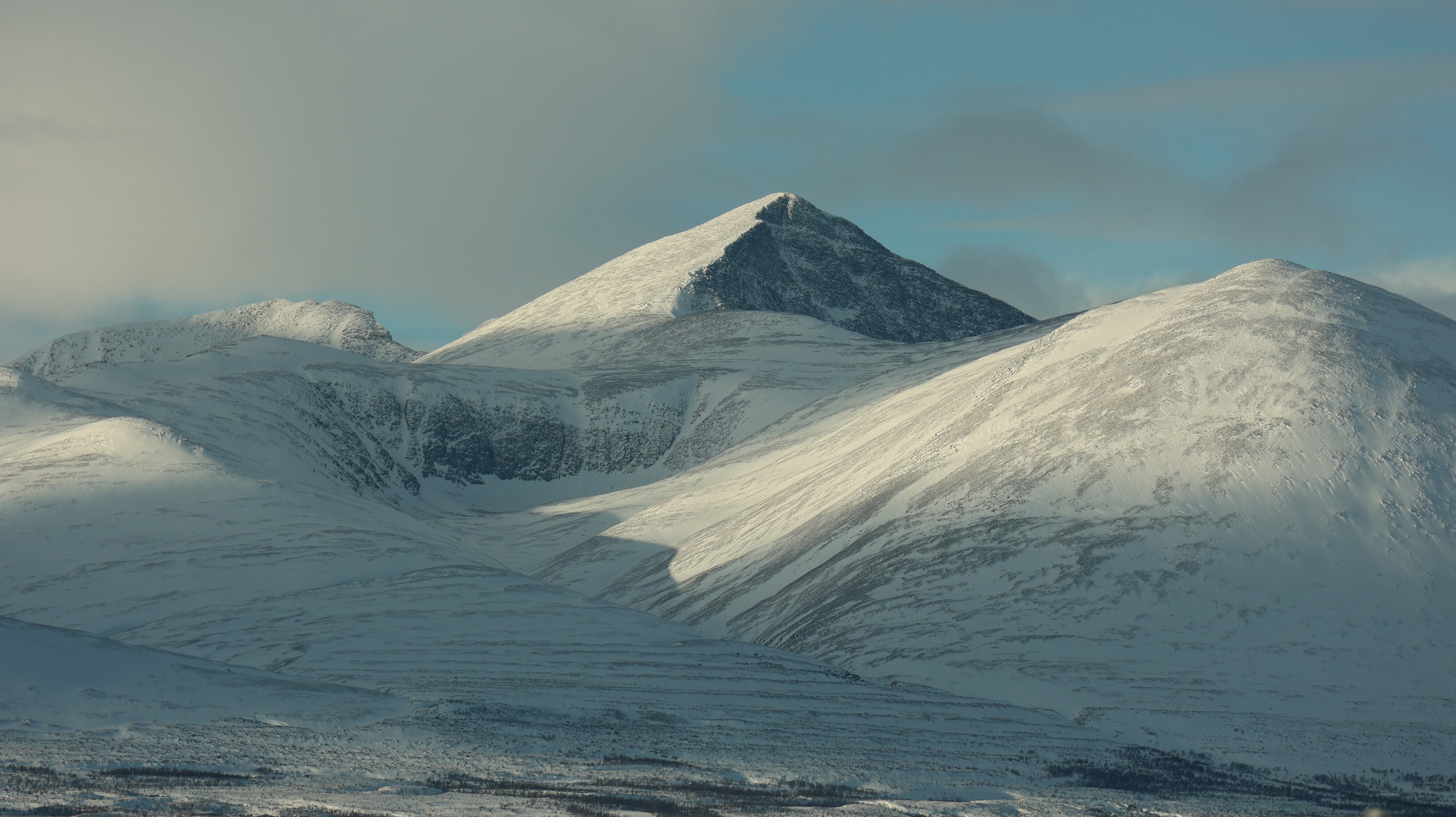 Nun geht es das Dovrefjell hinauf. Und was passiert, das Thermometer steigt und zwar heftig. Obwohl ich noch nicht viele Höhenmeter geschafft habe stehen plötzlich nur noch -11 °C in der Anzeige. Aber zumindest kommt es nicht dazu, dass man fast auf den Gefrierpunkt kommt, obwohl man auf gut 1.000 Meter ü.d.M. fährt, so wie im letzten Jahr. Und der Himmel sieht gut aus, schön blau. Langsam wird die Hochebene erreicht. Angestrebt wird, auf dem gleichen Parkplatz wie im letzten Jahr zu parkieren und ein paar Meter in die Botanik zu laufen. Selbstredend mit einem bestimmten Gedanken. Vom Parkplatz aus geht es über die Straße aber dieses Mal liegt kein so schön präparierter Weg vor der Nase. Egal, vorsichtig testen, ob man hier sofort metertief im Schnee versinkt oder ob das „hebt“? Ja super, da bricht man gar nicht viel ein. Also, weiter. Und, da ist ja gar keine Langlaufspur sondern eine Spur von einem Schneescooter. Wenn man darauf läuft sinkt man jeden Schritt nur minimal ein. Außer zwei oder drei Mal wo man unvermittelt bis zur Hüfte mit einem Bein im Tiefschnee steckt. Krass. Aber alles kein Problem.