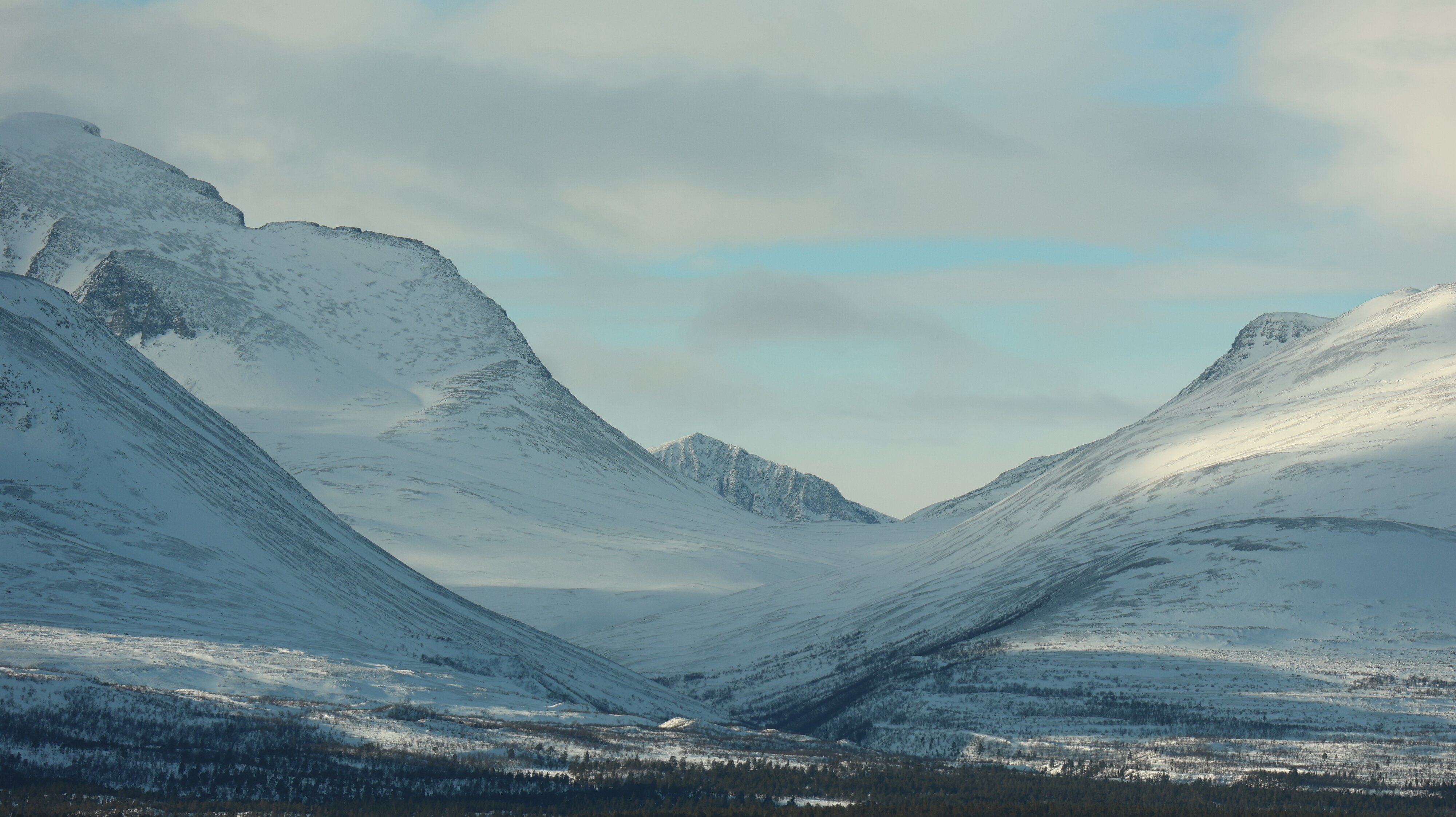 Kurz vor 8 Uhr hole ich mir im besten Brotladen von Trondheim, wenn nicht von ganz Norge zwei belegte Brote und einen Coffee-ToGo, mit kleinem Rabatt vom Hotel, weil dort ja kein Frühstück angeboten wird. Aus Trondheim finde ich mittlerweile auch ohne Navi raus. Es ist durchaus was los, aber Stau kann man das alles nicht wirklich nennen. Auf dem letzten Abschnitt der [E6] darf man unglaubliche 110 km/h fahren. Dem verweigere ich mich energisch, warum sollte ich hier mit „Warp-Geschwindigkeit“ fahren? Auch hier schneit es ein wenig. Aber es dauert nicht lange dann sieht man in der Ferne es ein ganz klein wenig, minimalst, heller werden.