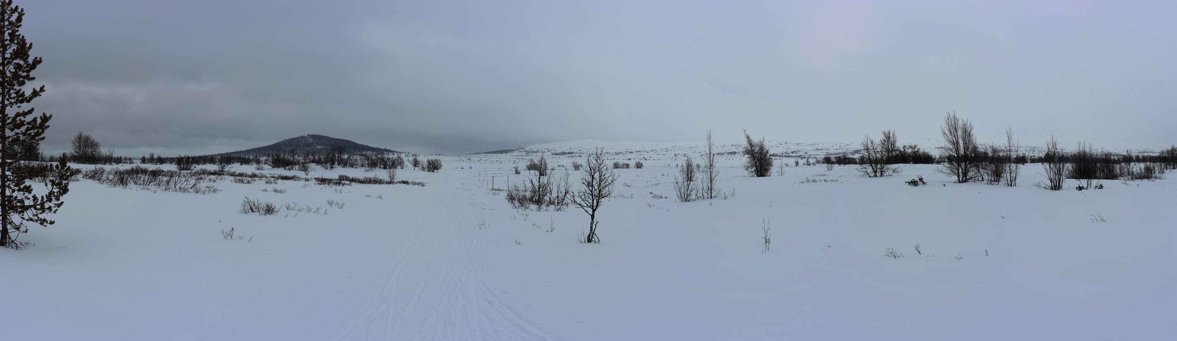 Dann also die Loipe entlang in Richtung „Tuftebru“. Es schneit, nicht wirklich unangenehm, es ist dabei fast windstill. Deutlich vor der Brücke kehre ich wieder um. Dann also die letzten Kilometer zur Unterkunft, es gilt dabei gleich drei Steigungen in kurzer Folge zu nehmen, sie sind aber moderat, in Steigung (max. 7%) und auch was die Kurven angeht.
