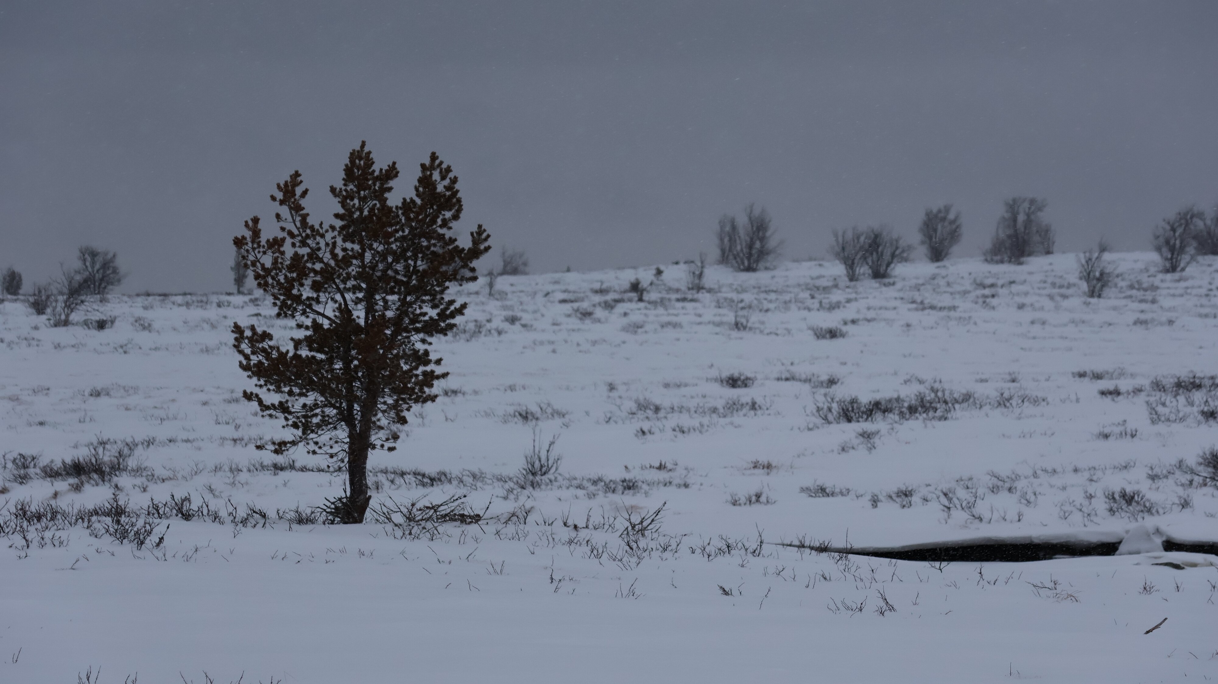 Der gemeldete leichte Schneefall hat schon eingesetzt als ich los fahre. Temperatur lag glaube ich bei -5° C, also weit von den -26° C in 2024 entfernt. Die [250] fahre ich nicht und nehme die etwas unkompliziertere [4]. Die Straße ist gut befahrbar.