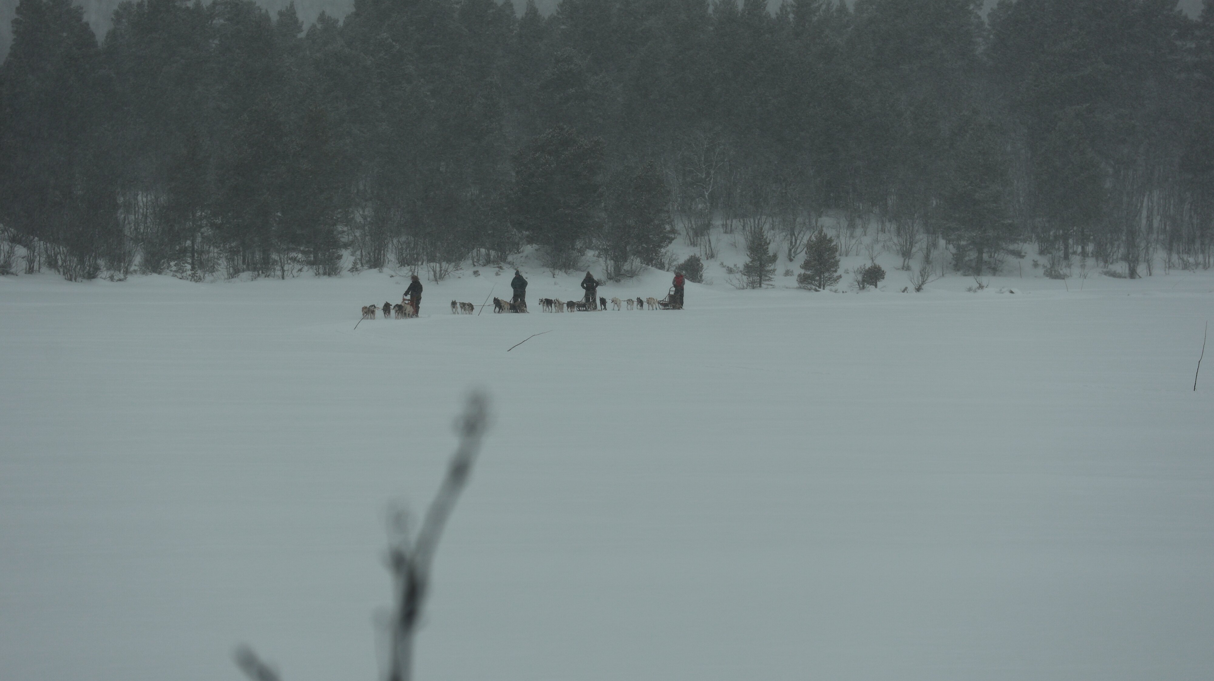 Es schneit immer noch, nicht wirklich wild, man kann noch weit schauen, dabei wird es ganz langsam dunkler.