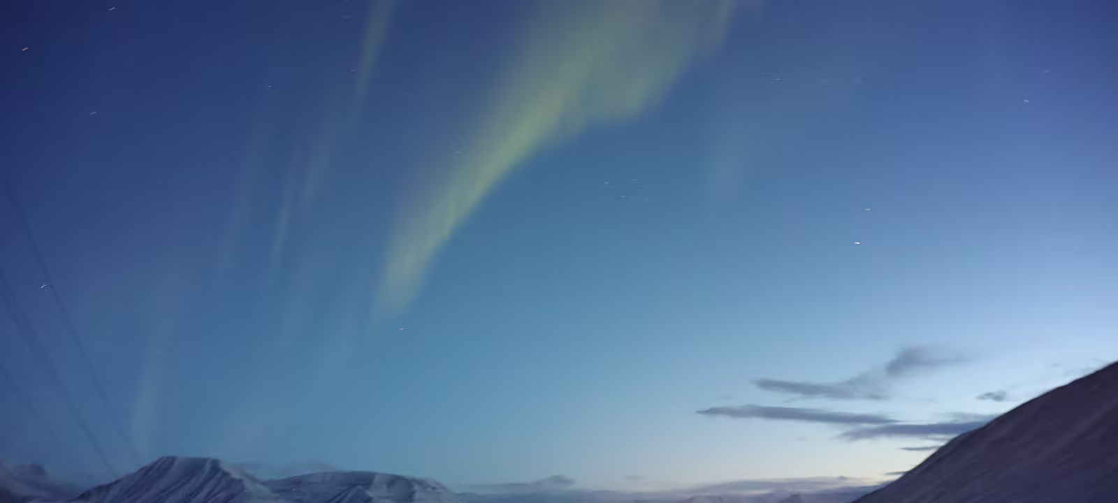 Seed Vault Hike - From Seed to Summit Ganz schwache Polarlichter sind zu sehen, es ist 12:15 Uhr.
