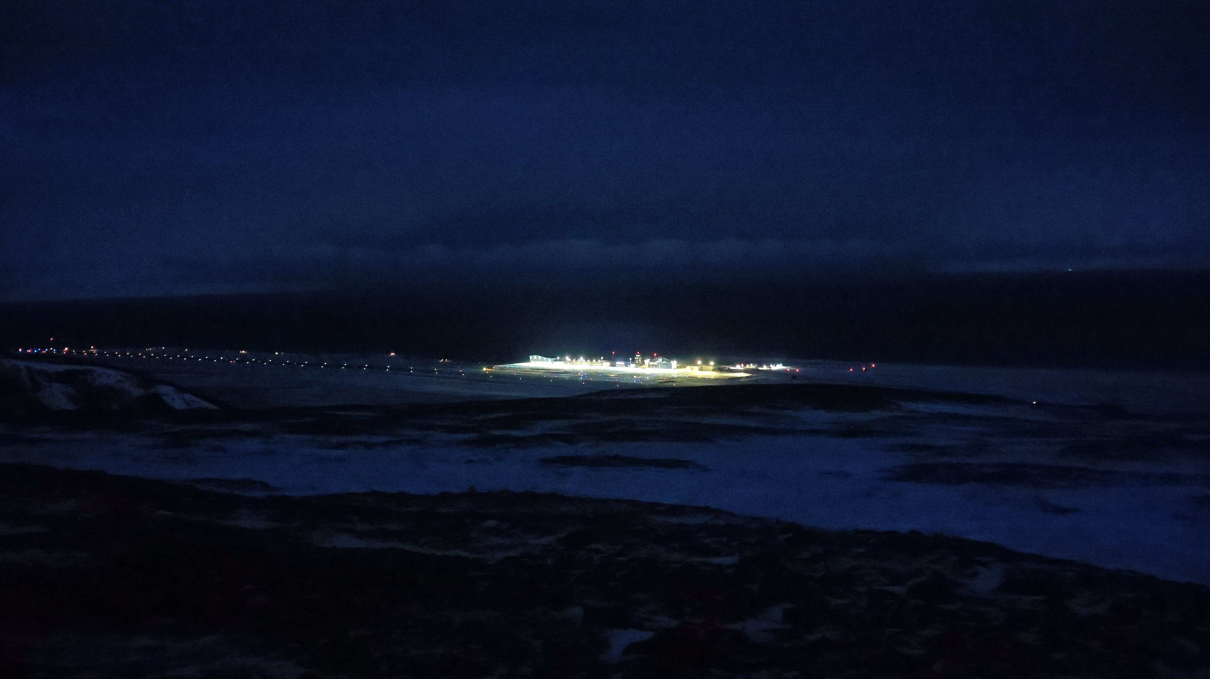 Ganz schwache Polarlichter sind zu sehen, es ist 12:15 Uhr.
