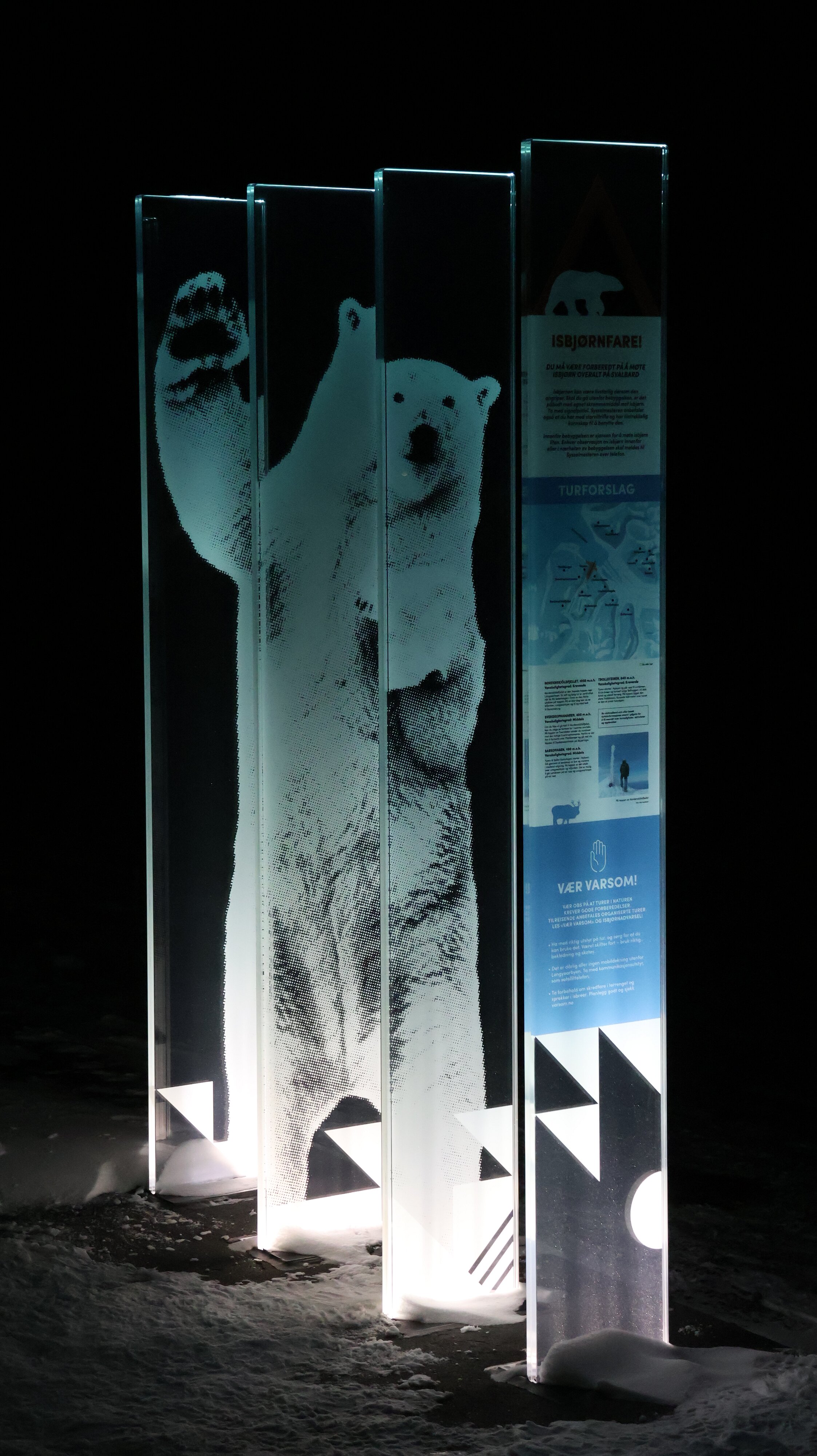 Longyearbyen Die Info-Tafeln am oberen Ende von Nybyen.