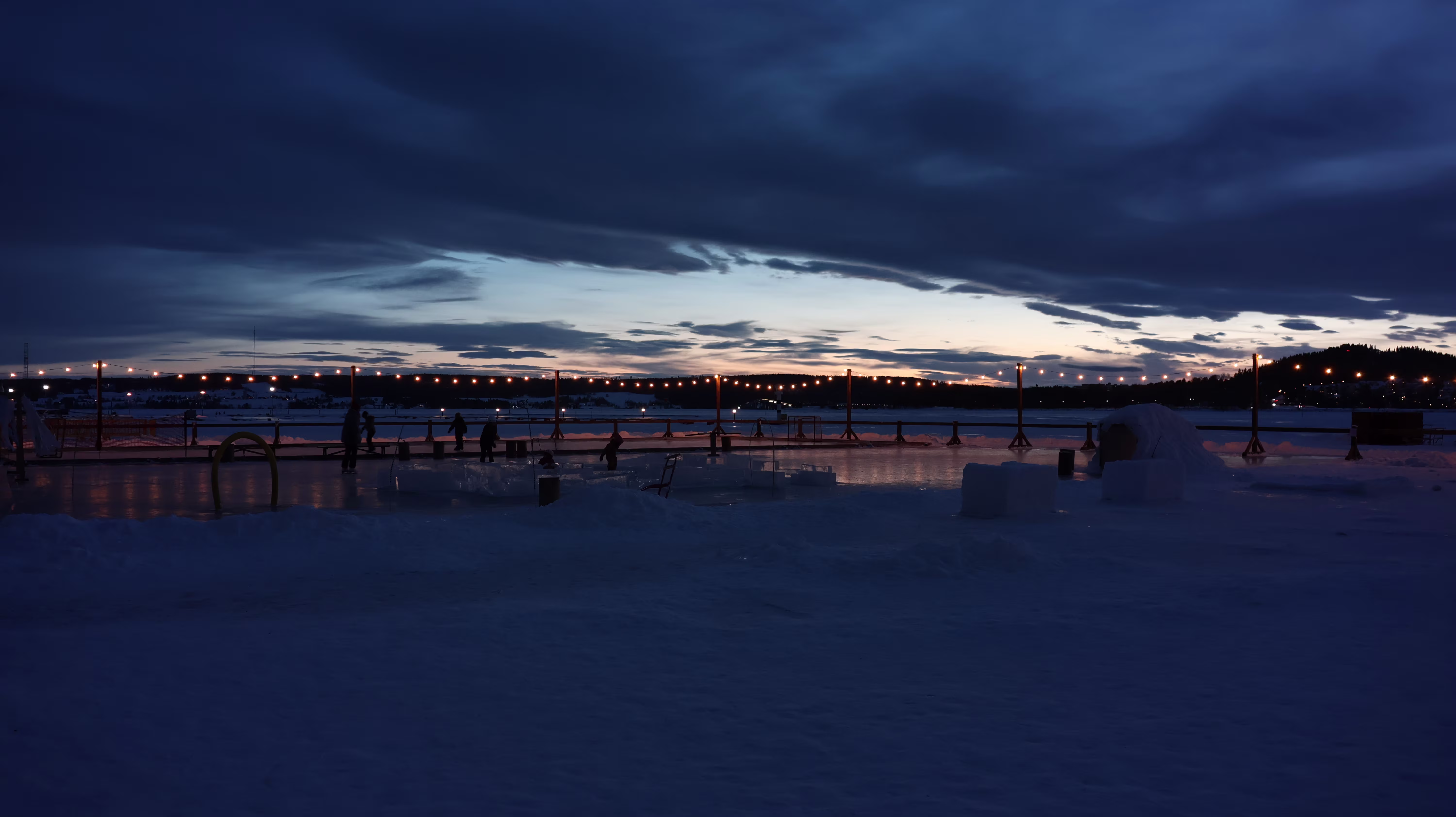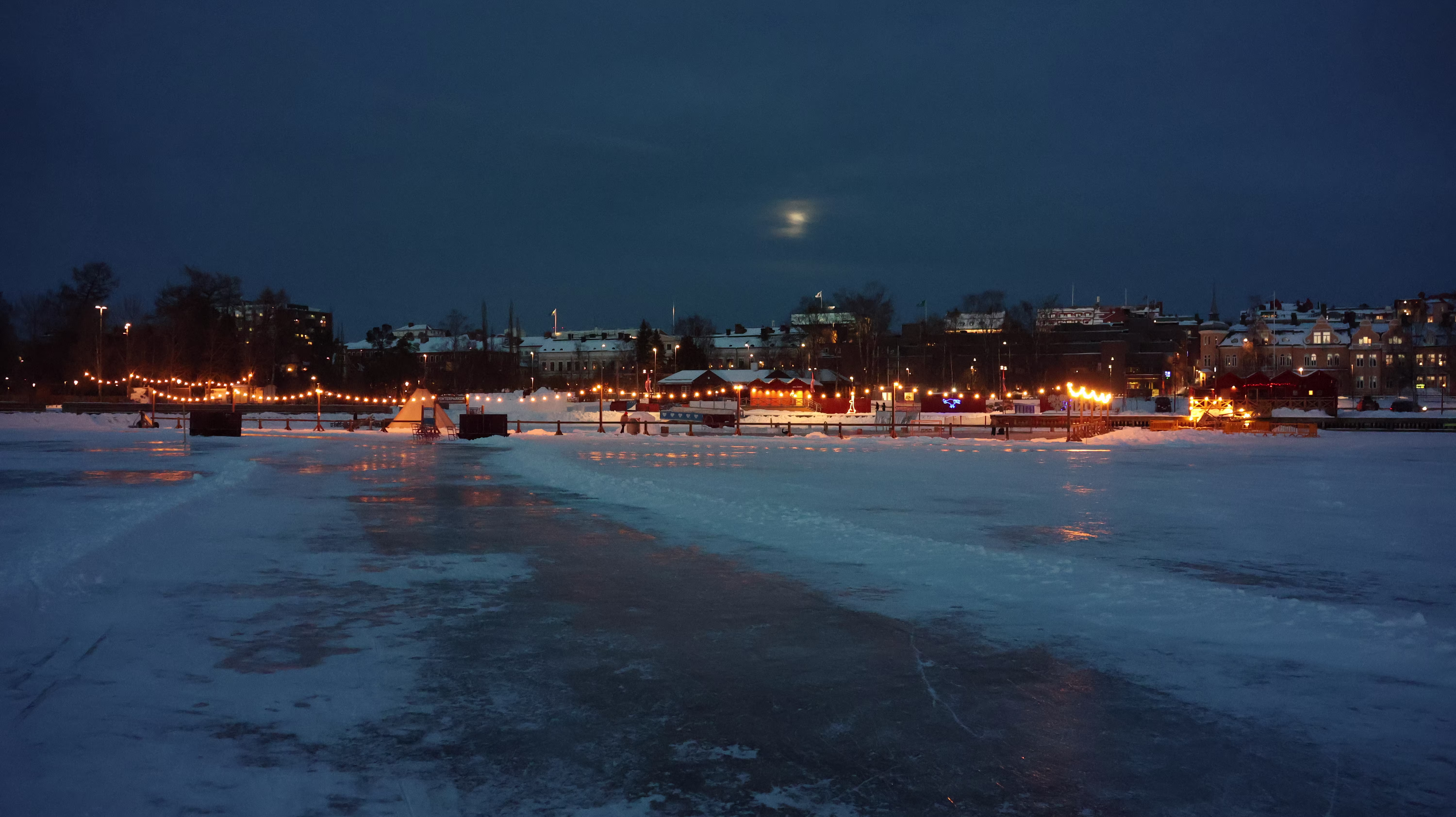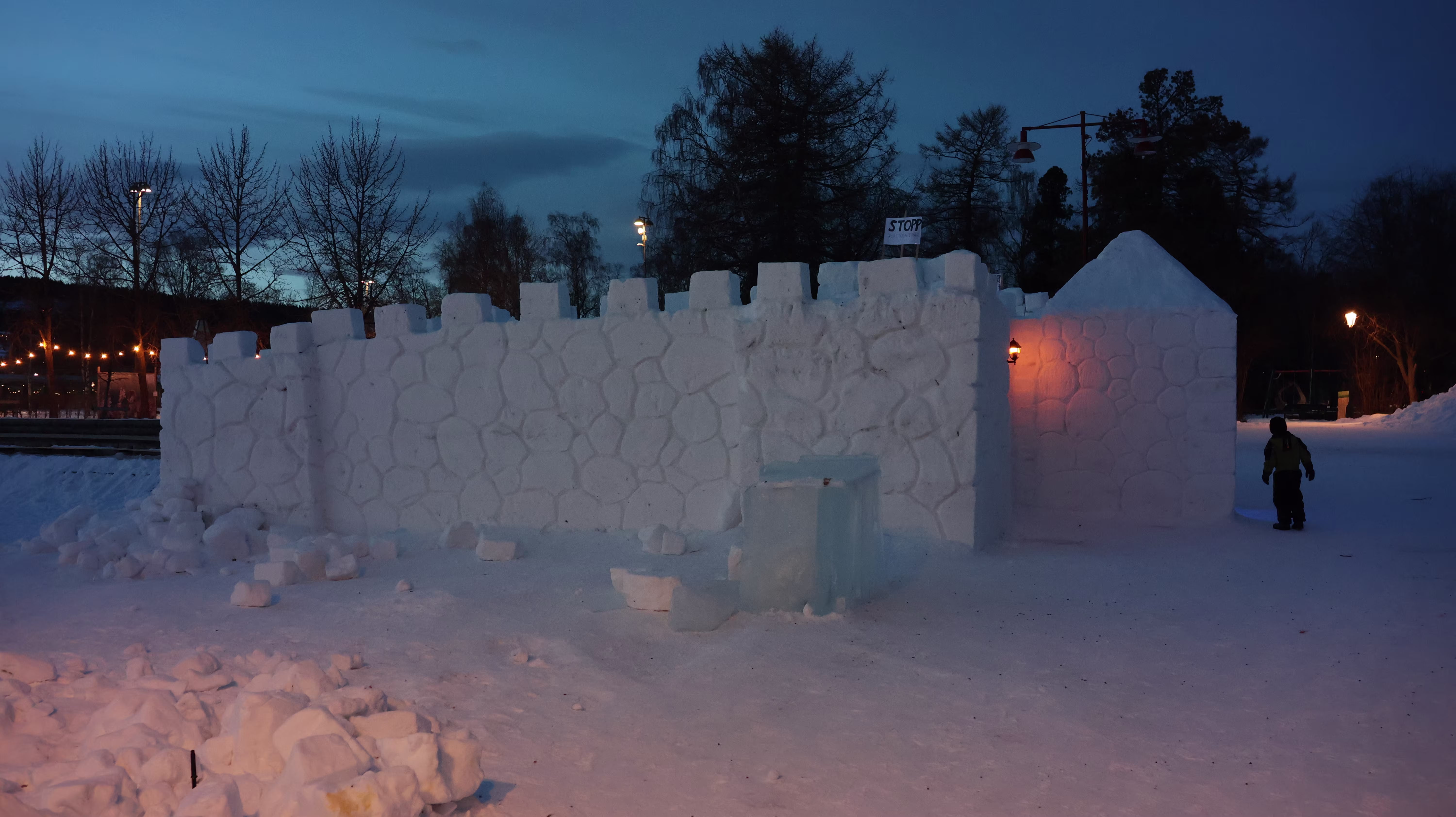 Sich präparieren für eine Runde am See. Am Seeufer steht ein kleines Schloss aus Schnee und dann geht mein Blick über den See und ich sehe, da sind Leute. Ja das ist ja fein, dann also heute kein Spaziergang über den Siljan in Mora sondern über den Frösjön in Östersund.