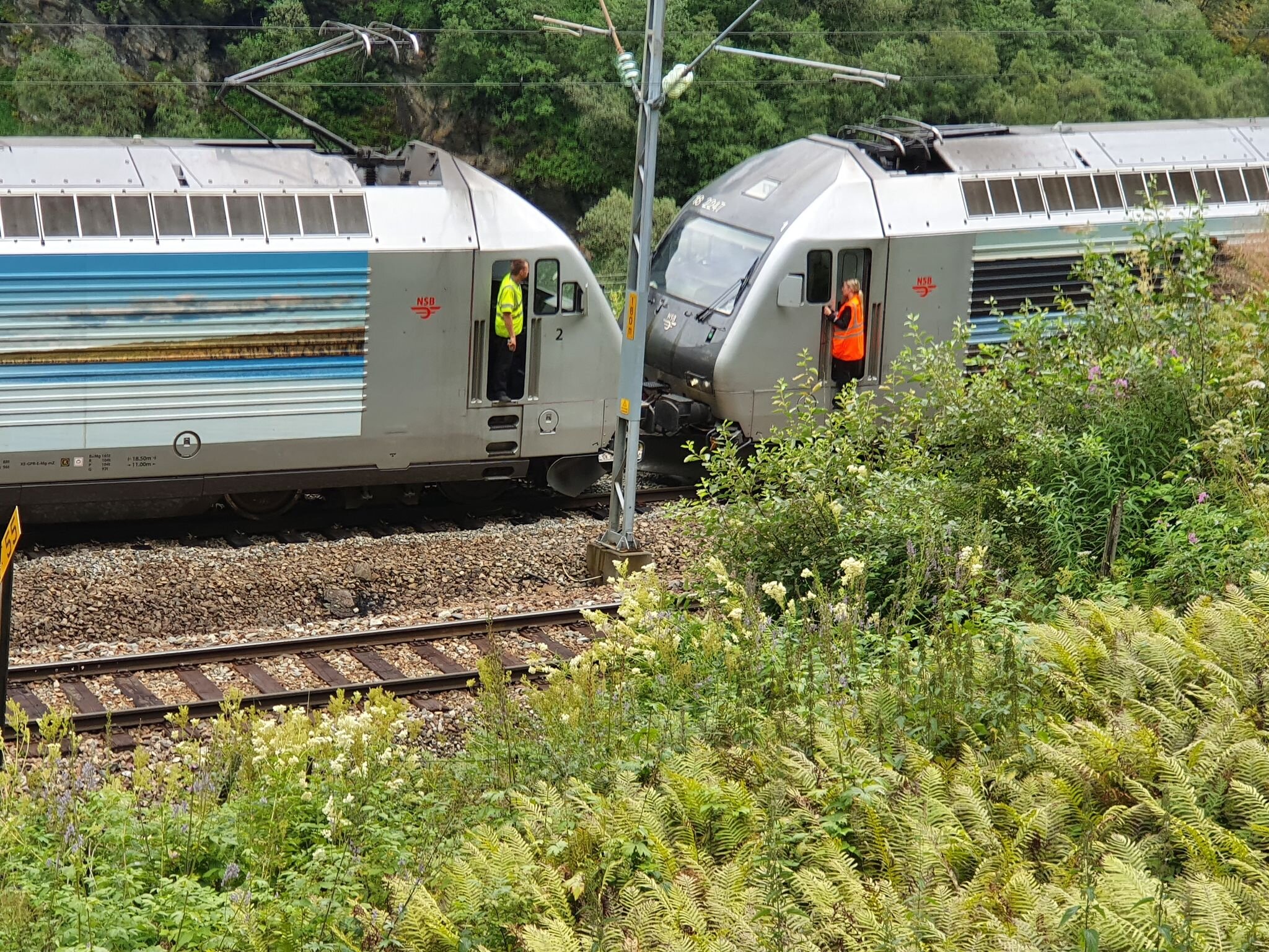 Det er også materielle skader på togene etter sammenstøtet som skjedde ved 14-tiden.