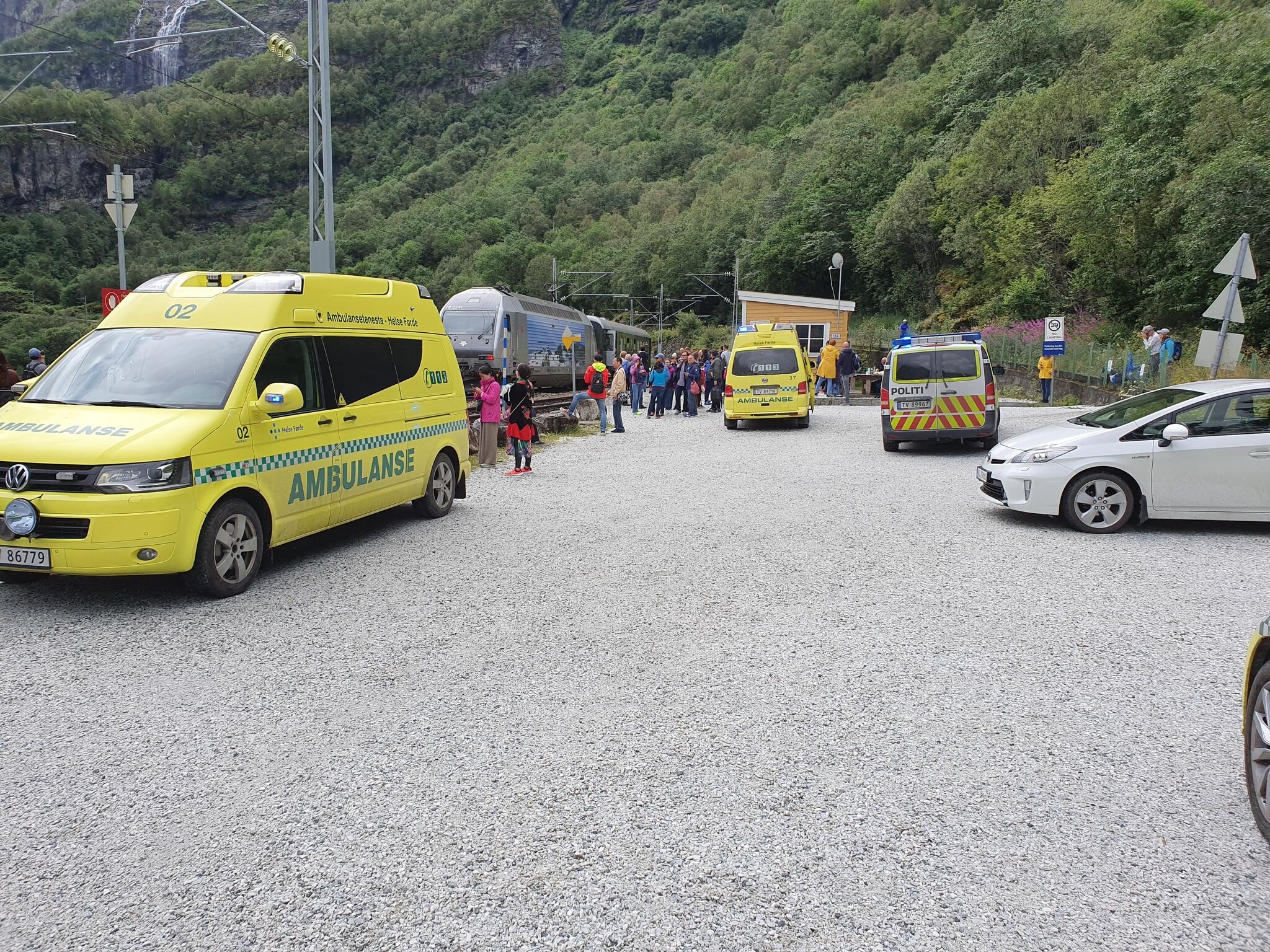 Mange av dem begynte å gå nedover til Flåm etter sammenstøtet. Klokken 16.45 opplyste operasjonsleder Dag Olav Sætre at et av togene skal frakte turister til Flåm.