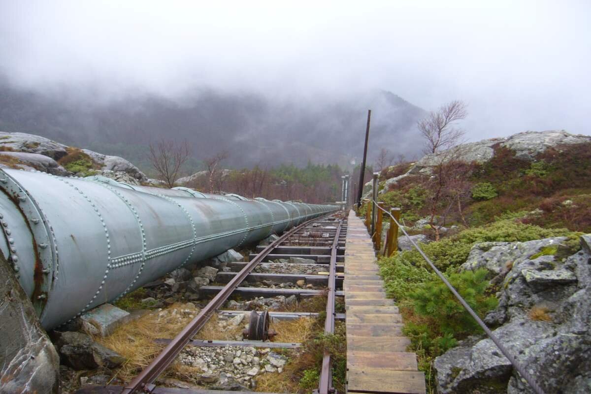 Wenn Sie alle 4444 Stufen, aber keine lange Wanderung machen möchten, dann können Sie einem 100 Jahre alten Weg zurück nach Flørli gehen. Der Weg wurde ursprünglich für den Damm an Tern See gebaut, um die Maschinen und die Ausrüstung zu transportieren, als dort gebaut wurde. Der Bau begann 1918 und wurde 1920 fertiggestellt.