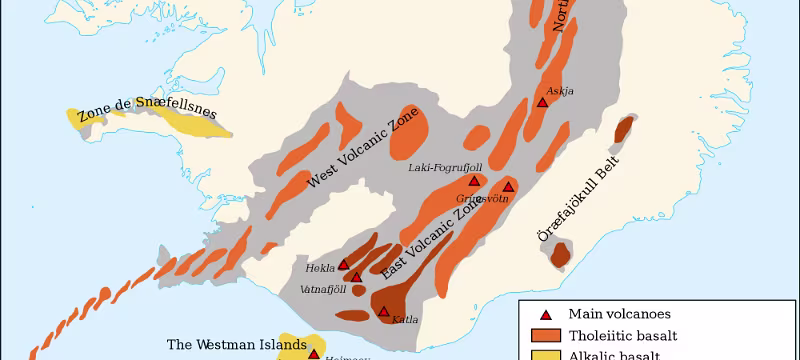 Das „Hero“-Bild zeigt eine Karte mit den wichtigsten Vulkanen auf Ísland. © ???.