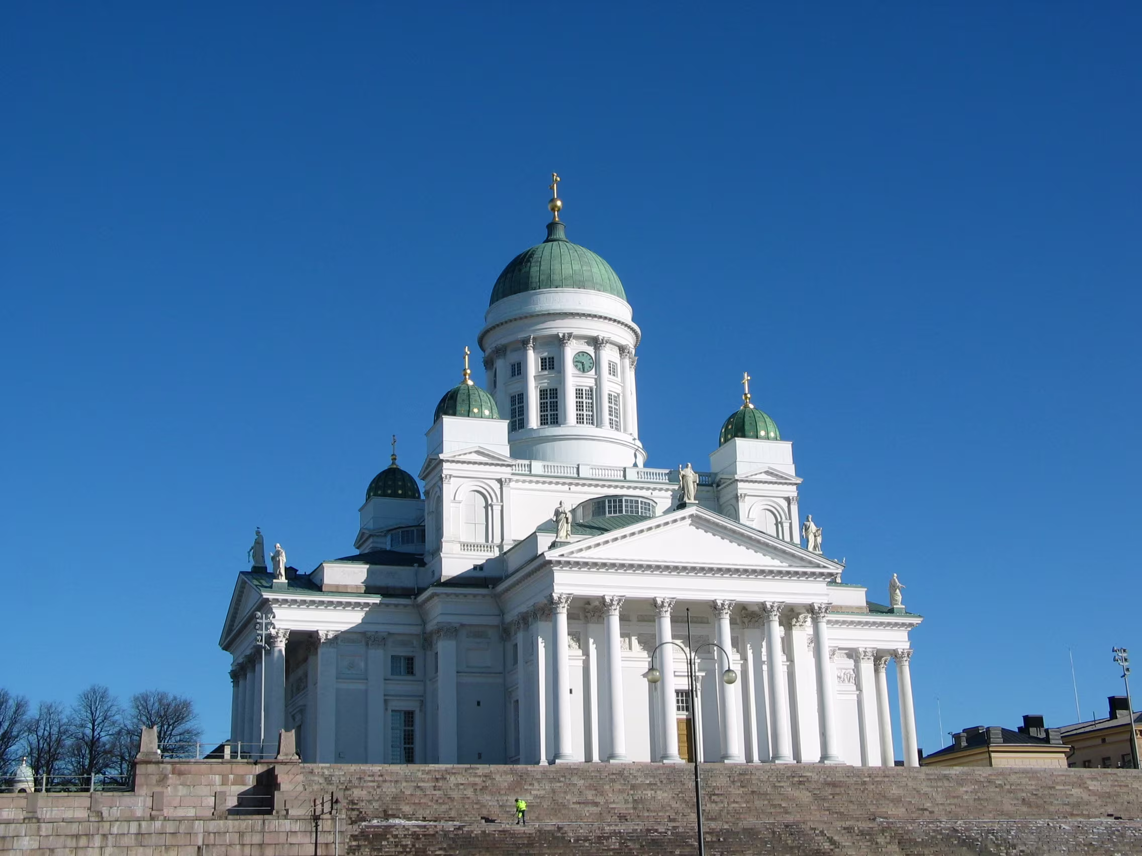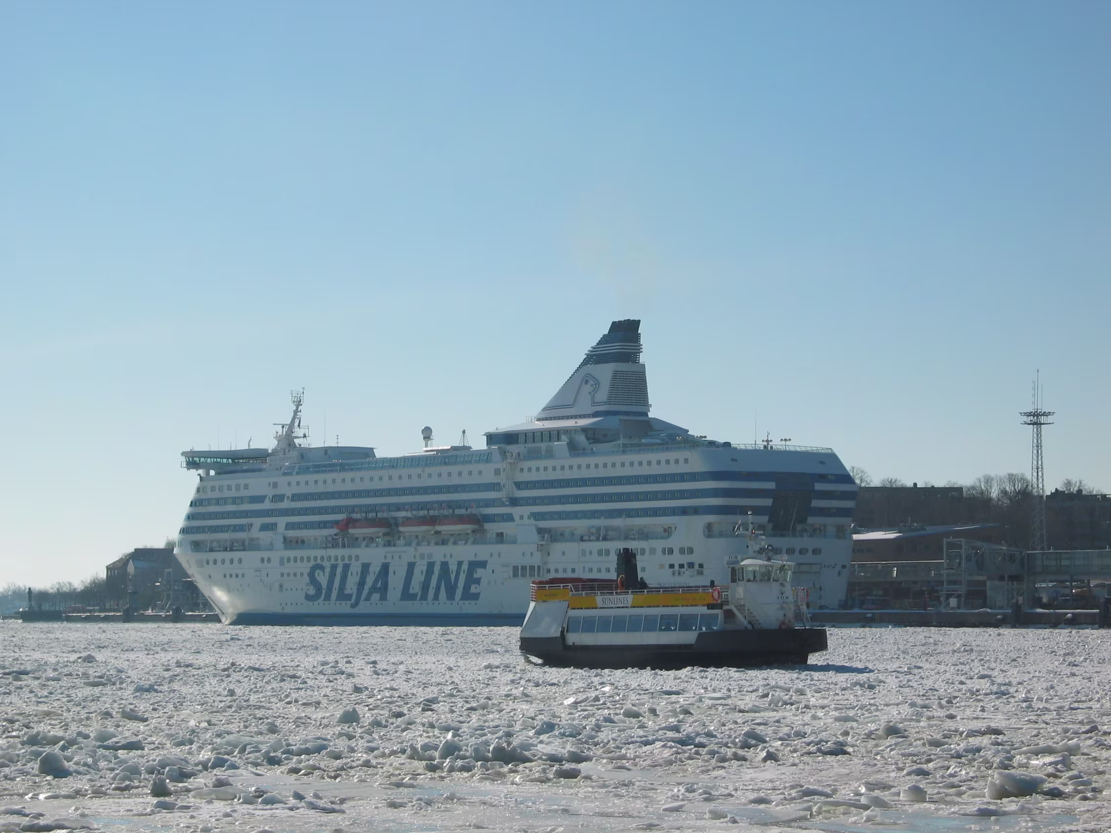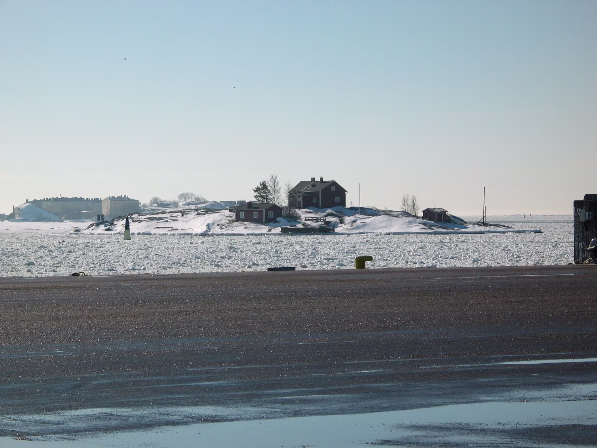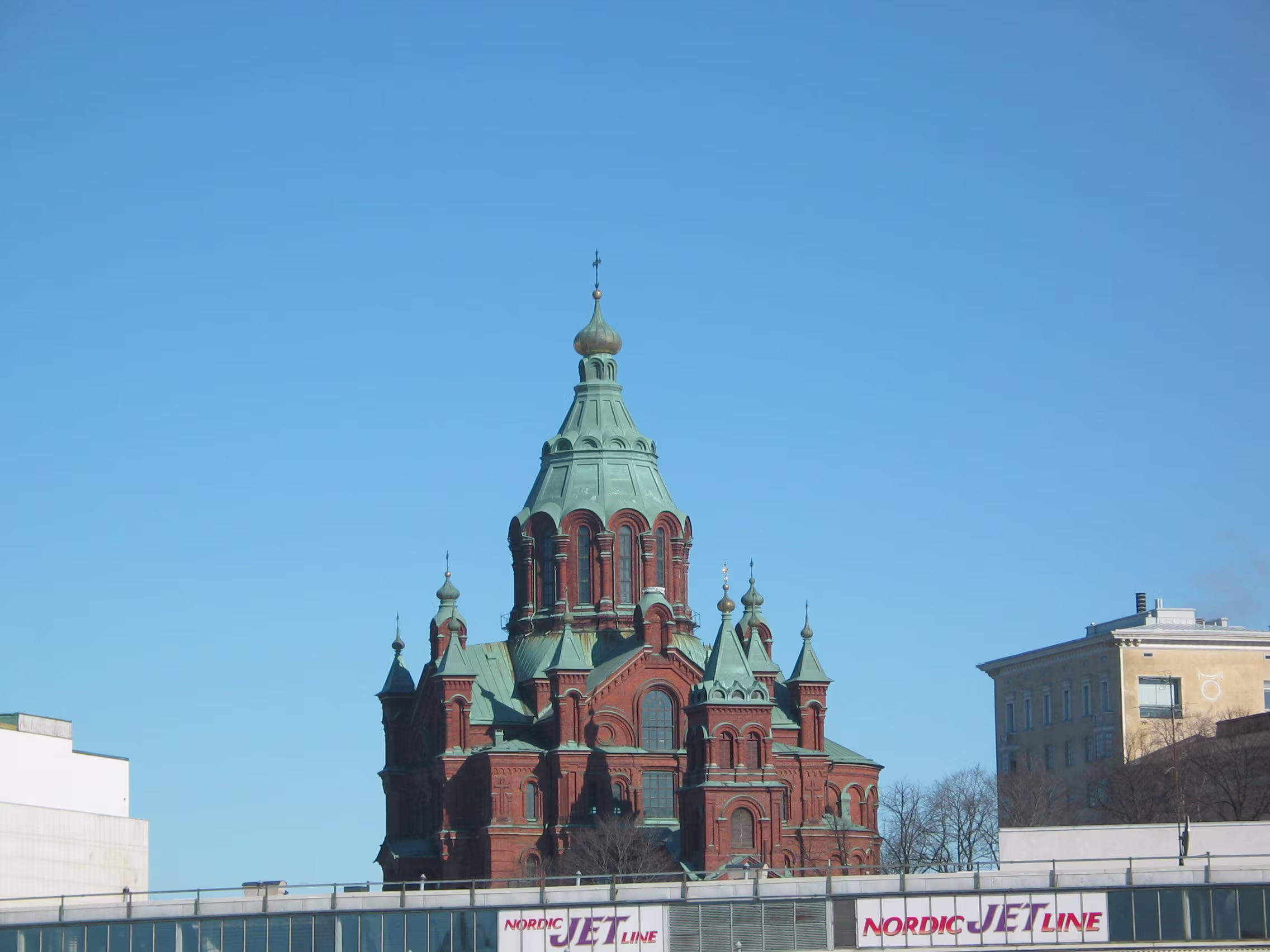 Die Domkirche bei dem blauen Himmel nicht noch mal anzusteuern wäre unklug gewesen, das macht doch gleich viel mehr her. Der Versuch den Eisbrecher aufzuspüren war allerdings vertane Zeit. Aber vielleicht hat diese Verzögerung genau zu dem richtigen Timing geführt, dass ich gerade diese kleine Fähre habe anlegen sehen, mit der ich dann auf die Festungsinsel Suomenlinna geschippert bin.