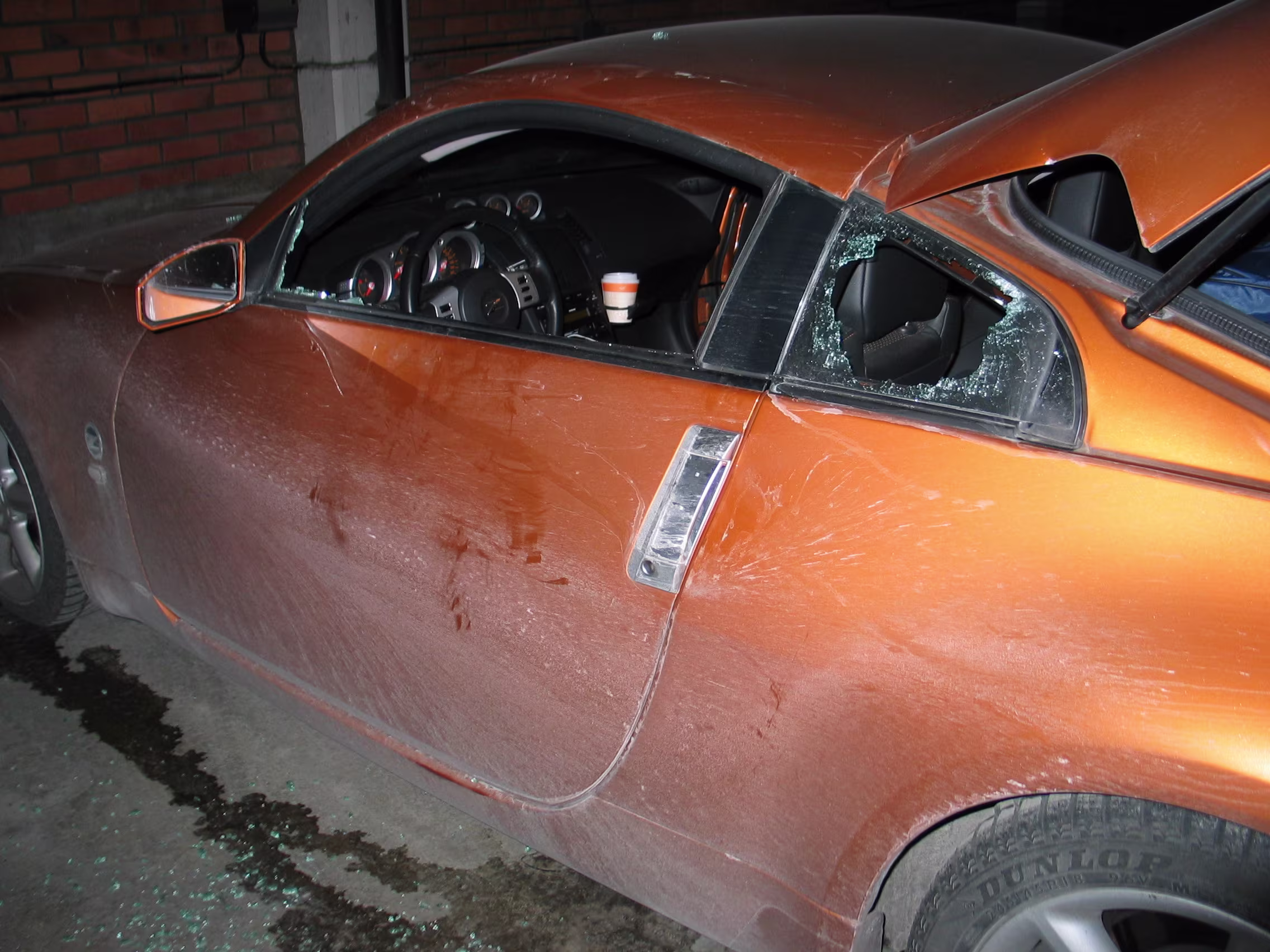 Meine Reisschüssel hatte ich in einem Parkhaus abgestellt. Als ich am Morgen dort ankam fand ich sie mit eingeschlagener Seitenscheibe (Fahrerseite) wieder. Über die Rezeption des Hotels hatte ich Kontakt mit der lokalen Polizei, aber die wollte sich der Sache nicht annehmen. Netterweise hatte man mir an der Reption die Adresse einer Auto-Werkstatt in der Nähe herausgesucht. Dort hatte man sich dann des Problems angenommen und eine Plexiglas-Scheibe eingesetzt und das ganze mit „tape“ fixiert. Den Rest an tape hatte man mir vorsorglich mitgegeben, was sich als weise herausgestellt hatte.