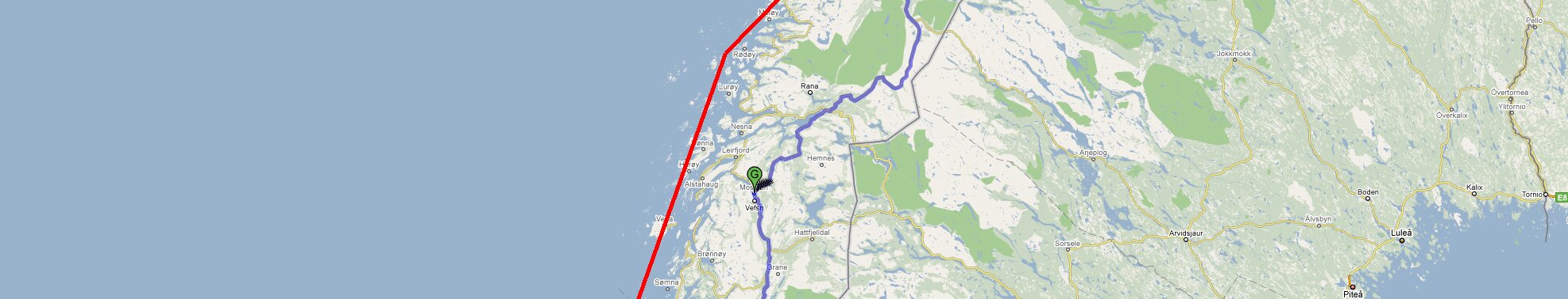 - Mo: Mosjøen, Mo i Rana, Polarkreis, Saltfjellet, Fauske, Bognes, Lødingen, Harstad