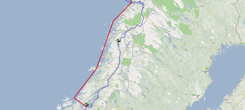 - Sa: Oslo, Randsfjorden, Lillehammer, Dombås, Trondheim