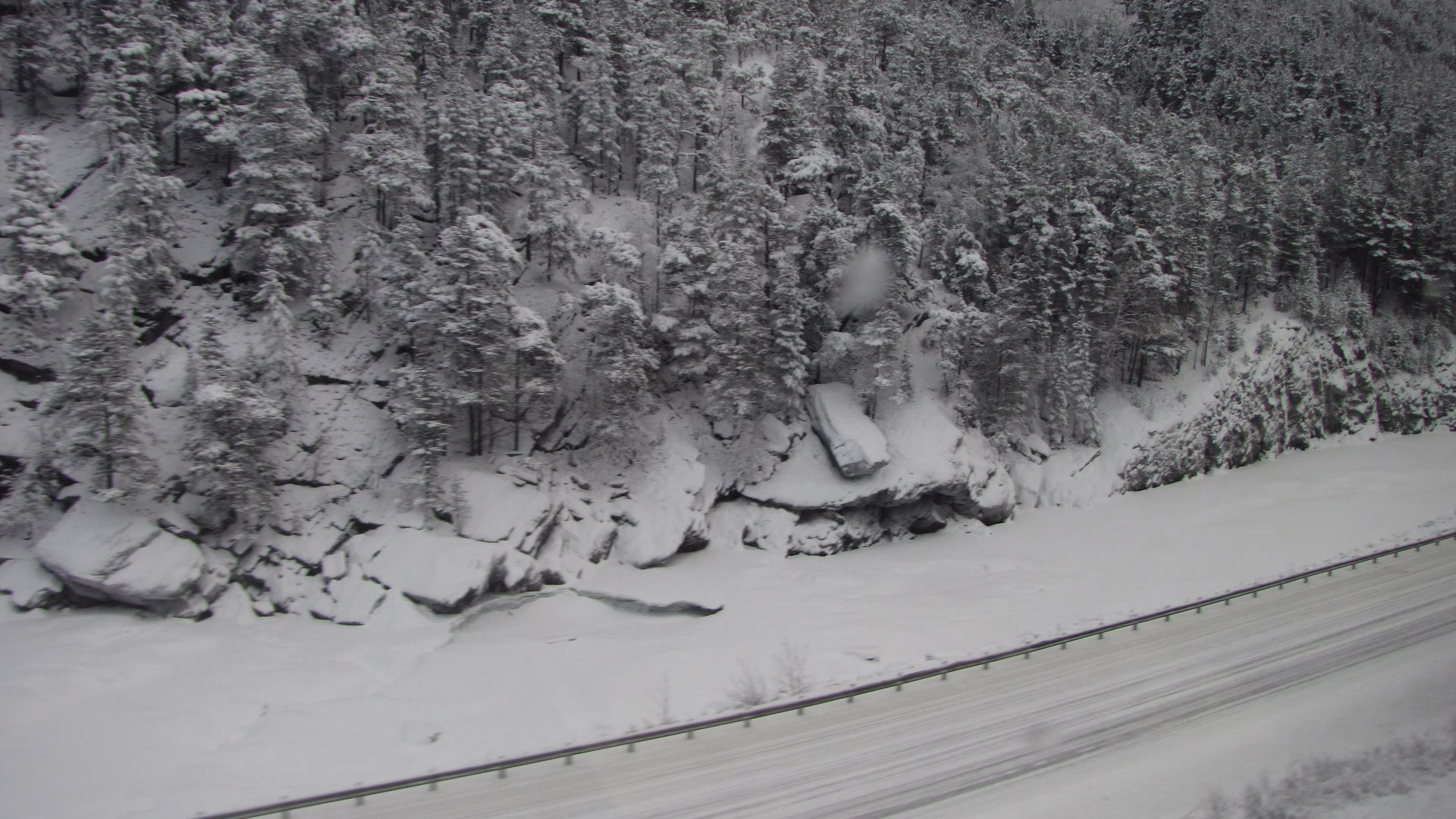 Heftiger Schneefall bei der Ankunft in Trondheim. Die Schneemassen sind gewaltig. Der Wagen von Trondheim nach Oslo war wohl von einer anderen Baureihe und längst nicht so schön wie auf der Fahrt von Oslo nach Trondheim. Aber auch hier gab es im NSB komfort Bereich wieder Zeitungen, Kaffee und Tee gratis, eine feine Sache. Fast alle Sitze des Wagens waren besetzt. Gegen 9 Uhr dämmert es langsam.