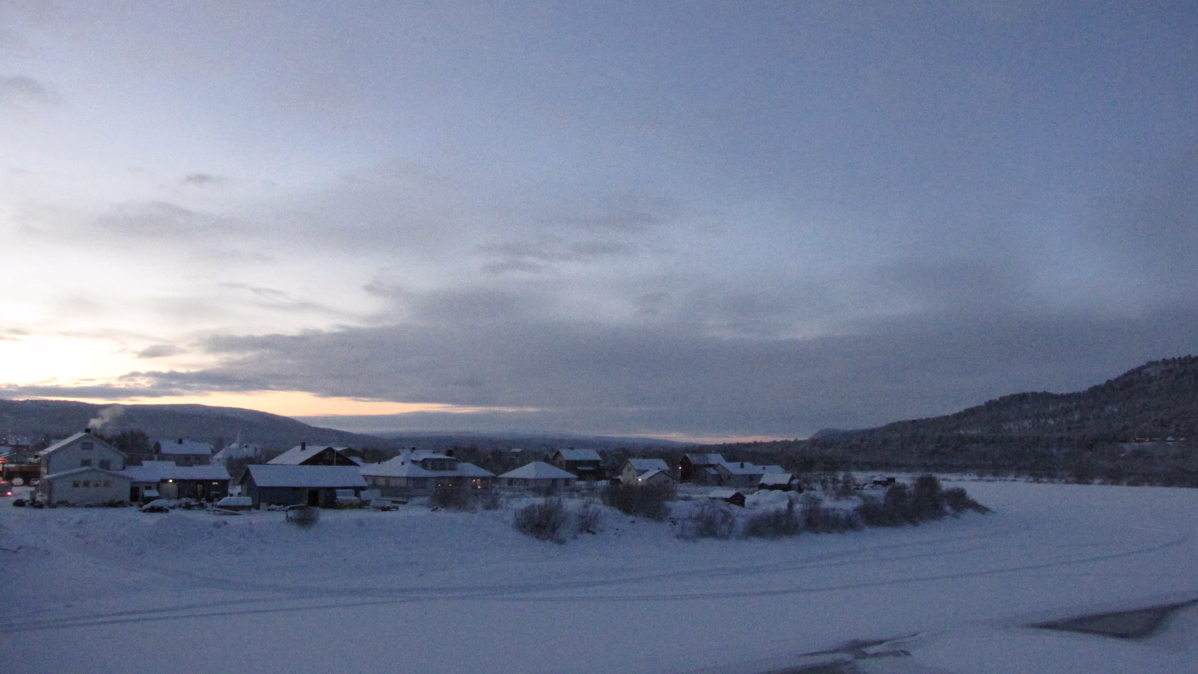 In Hammerfest schneit es heftig. Die Busfahrt in mehreren Etappen beginnt. Zuerst nach Skaidi, dort umsteigen nach Olderfjord, bis zum ersten Etappenziel Karasjok. In Olderfjord hatte es aufgehört zu schneien und es dämmerte langsam. Dann folgte der schönste Teil der heutigen Strecke. Im Osten wurde es immer heller, es lag eine Menge Schnee und die Landschaft einfach atemberaubend. Im Prinzip gab es außer Landschaft auf der gesamten heutigen Busstrecke von ca. 534 km auch nix anderes zu sehen. 😎