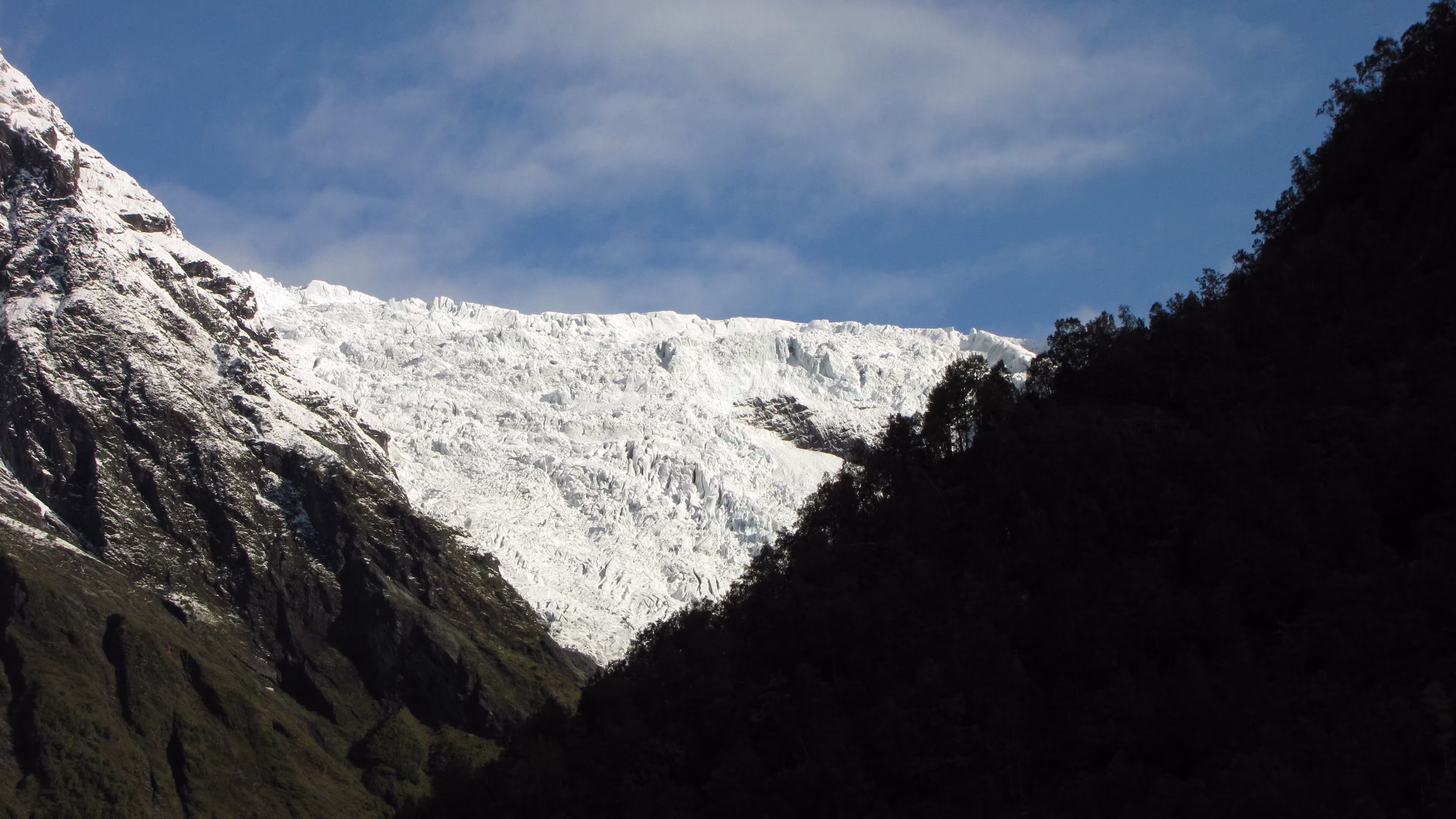Aber, vielleicht war die ganze Aktion auch für was gut. Denn, beim Abmarsch von der Briksdalsbre Fjellstove (ich war der einzige Übernachtungsgast 😎) war der Himmel noch ziemlich bewölkt, bei der Ankunft am Gletscher wurde der Himmel aber immer blauer, einfach grandios. Dummerweise habe ich den GPS-Logger im Auto liegen lassen, die Bilder haben also nicht die korrekten Koordinaten [Nachtrag, habe die GPS-Daten noch per Hand nachgetragen]. Die Berge am Gletscher scheinen bis in den Himmel zu ragen, fast senkrecht geht es steil nach oben. Irgenwann haben sich dann alle Wolken verzogen, blauer Himmel und die Sonne fällt direkt auf den Gletscher, welch ein Anlick. Handschuhe und Mütze waren übrigens wohl gelitten 😎.