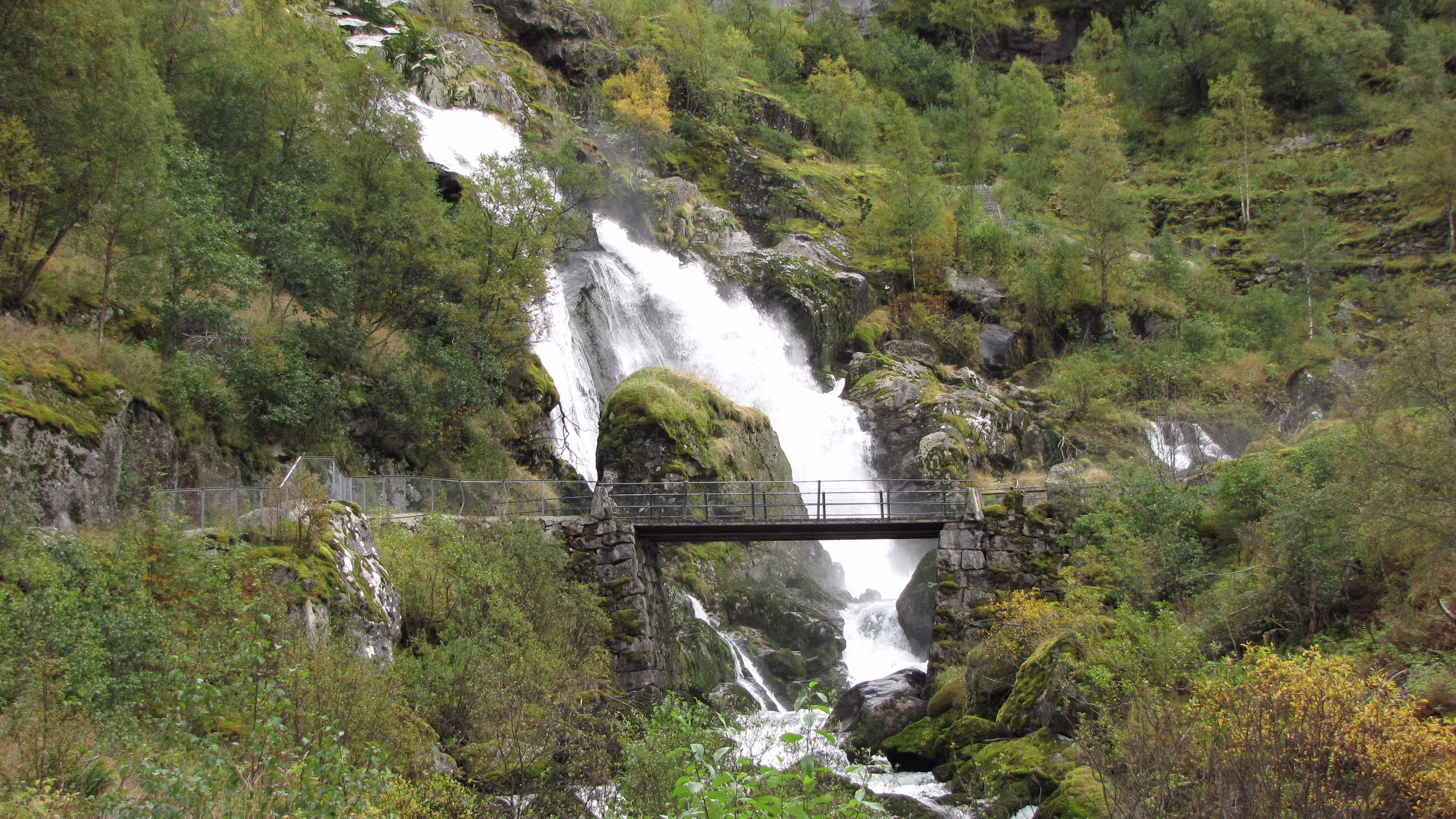 Das Wetter bei der Abfahrt in Flåm schon mal nicht ganz so schlecht, bewölkt zwar, aber kein strömender Regen.