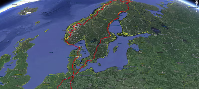 Norge 2012 Gesamter Streckenverlauf - Auto: 8.206 km - Schiff: 383 km - Spritverbrauch: 9,1 l/100 km - ø Geschwindigkeit: 76,3 km/h. Die Reise als Hörbuch