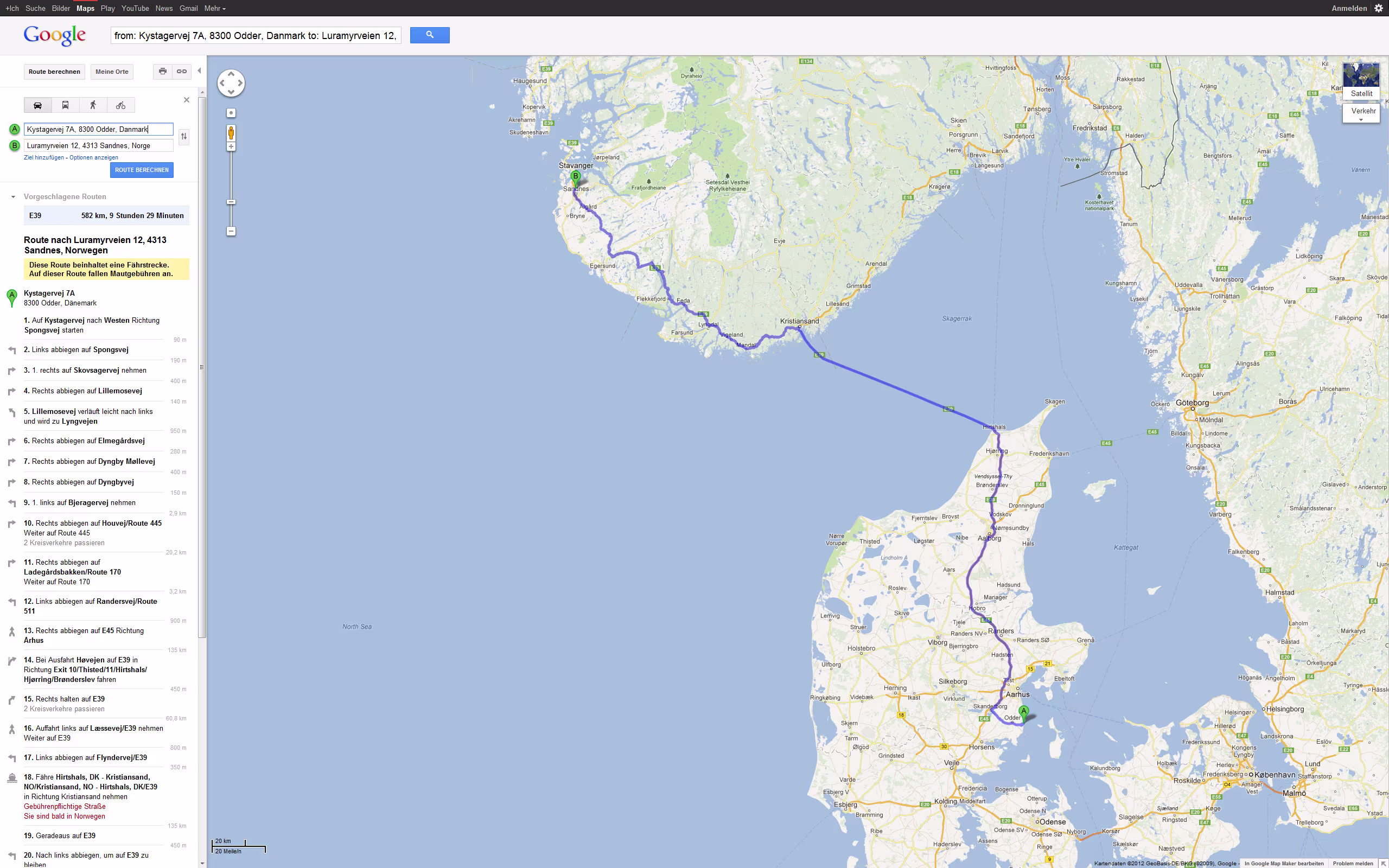 Tour Planung 03 - Kystagervej 7A, 8300 Odder, Dänemark nach Luramyrveien 12, 4313 Sandnes, Norwegen - Google Maps - Opera Mo 17.09.2012 – Odder - Sandnes Größere Kartenansicht