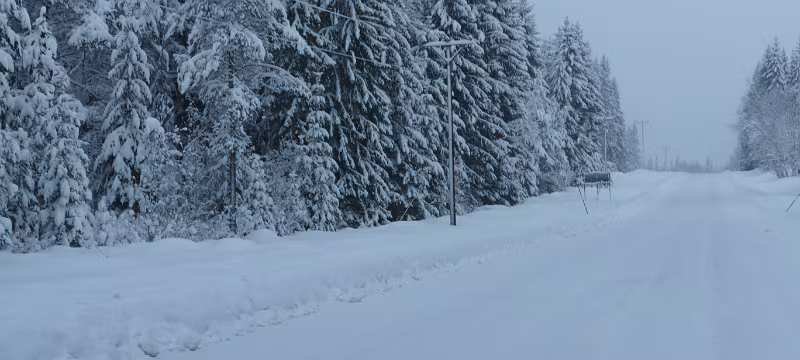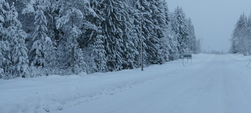 Es hat die ganze Nacht, vermutlich, ich habe nicht auf der Lauer gelegen 😎, leicht geschneit, das Auto war zumindest mit einer ordentlichen Schicht Schnee bedeckt. Der bei meiner ersten Reise nach Norge erstandene Kehrbesen samt Eiskratzer kam zum ersten Einsatz in der aktuellen Wintersaison. Die Temperatur in Kristinehamn lag bei -5 °C zum Zeitpunkt der Abfahrt um 8 Uhr. Die Straßenverhältnisse waren gut, entweder lag, auf den kleineren Nebenstraßen, eine geschlossene Schneedecke oder auf den größeren Straßen eine fast ganz geräumte Fahrbahn. Und an längeren Steigungen lag sogar etwas Split, also ziemlich gute Fahrbedingungen.