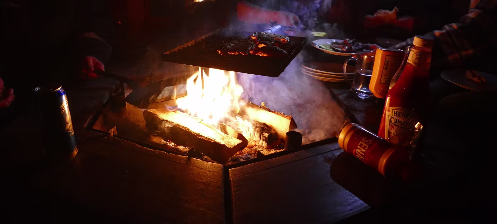 Das Abendessen wurde in einem kleinen Kotten geboten. Darin brannte ein schönes offenes Feuer und es gab gegrilltes Fleisch, gegrillte Zucchini und geröstetes Brot. Bei einer angenehmen Unterhaltung verflog die Zeit wie im Flug. Das zweite Standbein neben dem Hotel sind Touren mit dem Schnee Scooter. Die Gastgeber erzählten von der Grube in Malmberget, sie haben sie besucht, was jederzeit, sogar für Einzelpersonen möglich sei. Alles dort sei (mindestens) eine Nummer größer als man es vielleicht bisher schon gesehen hat. Speziell die ganzen Maschinen seien gigantisch.