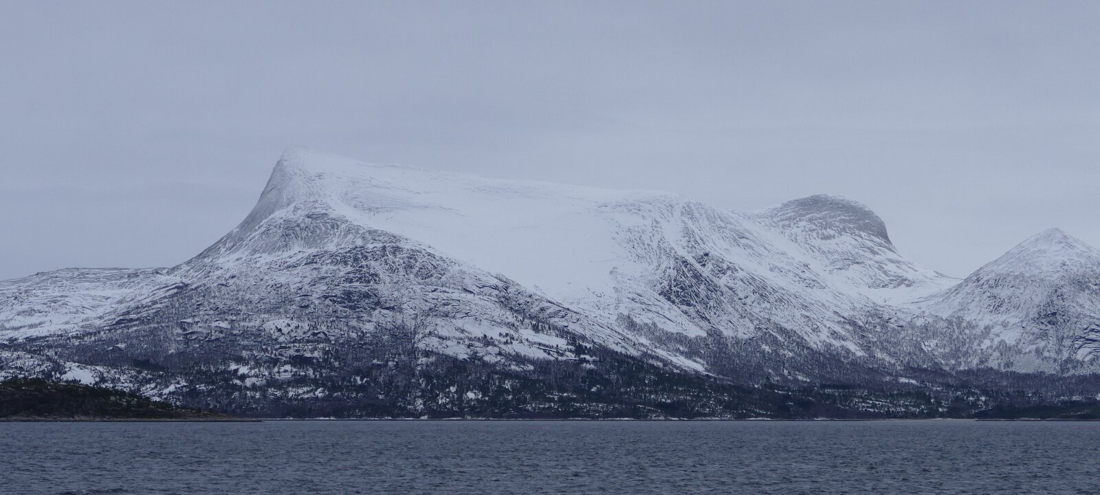 Die Fähre in Bognes erreichte ich in passender Zeit, es wehte ein scharfer Wind. Bis die Fähre kam wurde ich schon mal gut durchgepustet. Es standen gerade mal drei Autos und zwei LKW zur Überfahrt bereit. Beim Auffahren auf die Fähre wunderte ich mich deshalb, dass die beiden Fährleute die paar Hansels nicht gleich abkassierten. Auf der Fähre zum Stillstand gekommen, wartete ich noch ein paar Minuten, ob nun jemand zum Abkassieren kommt, aber es machte keiner Anstalten Geld zu fordern. Also stieg ich aus und erwarb eine pølse, akkurat på norsk, ikke sant.