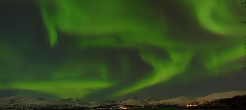 Ankunft in Tromsø bei wolkenlosem Himmel. Ja, das könnte was werden mit Nordlicht. Und es wurde was, nicht das ganz große Superspektakel, mit Farbspielen und ausgedehnt auf den ganzen Himmel, aber auf jeden Fall sehr beeindruckend.