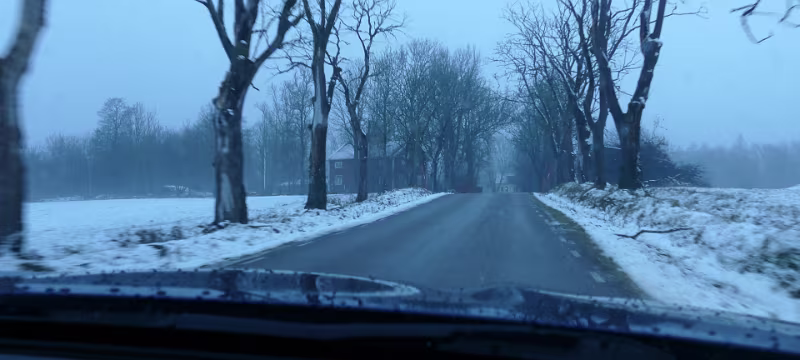 Örebro habe ich südlich auf kleinen Kreisstraßen umfahren, da taten sich dann auf einmal auch schneebedeckte Wege auf. Mehr als 0 °C (also kälter) waren aber nicht drin.