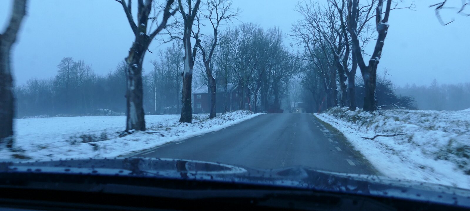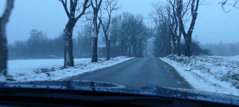 Bis dahin hatte es Temperaturen zwischen +4 °C und +6 °C, Schnee keinen Krümel. Auf der Landstraße 50 fiel die Temperatur dann auf +2 °C und immerhin Schneereste konnten ausgemacht werden.