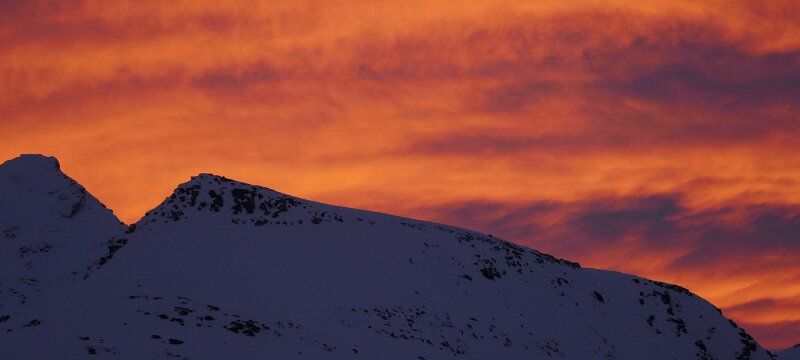 Tja die heutige Fahrt war jetzt nicht so spektakulär, Sonne gab es doch keine zu sehen, noch nicht den kleinsten Fitzel blauen Himmels, einzig nicht lange nach Tromsø gab es mal ein paar sehr schön beleuchtete Wolken. Und temperaturmäßig ging es teilweise bis auf +5 °C hoch, trotzdem lag überall noch jede Menge Schnee.