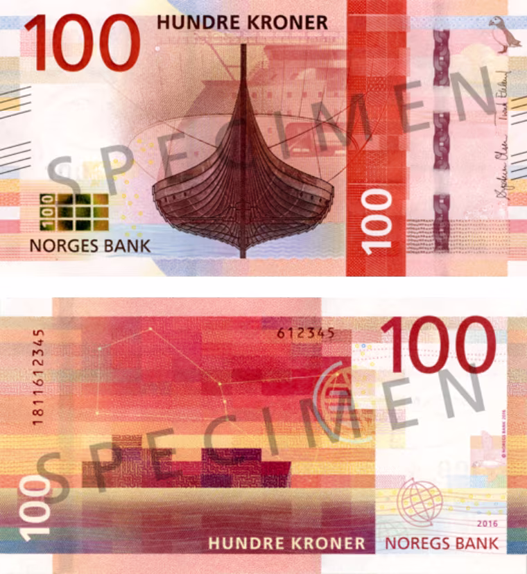 Seddel 100- og 200-kronesedler, © Norges Bank