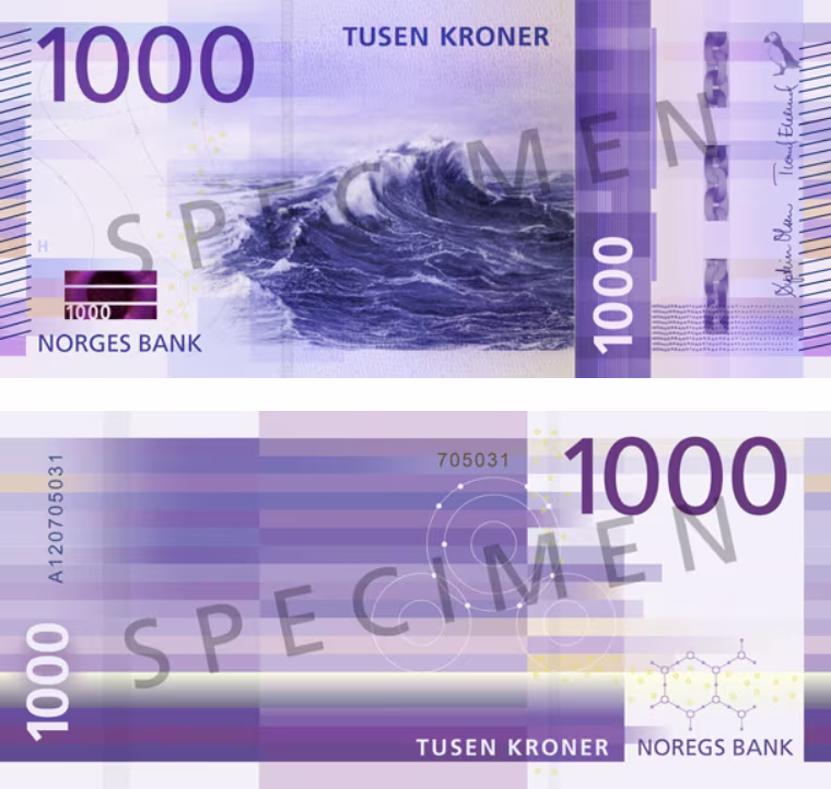 Ny 1000-kroneseddel, Utgave VIII, Planlagt utgitt 4. kvartal 2019, © Norges Bank