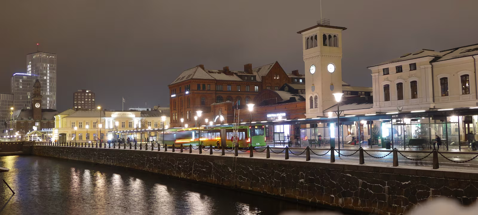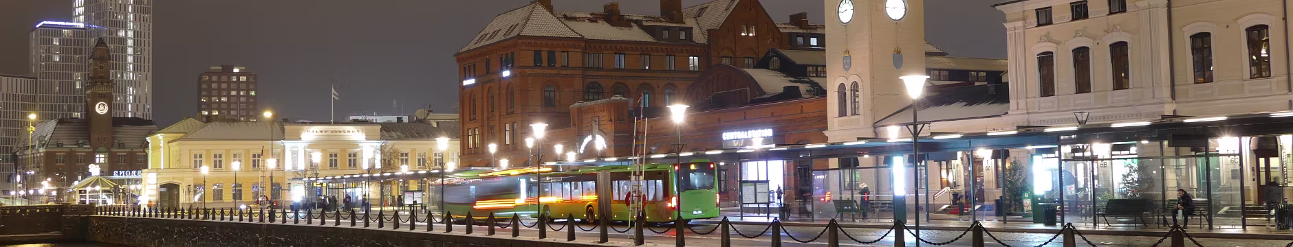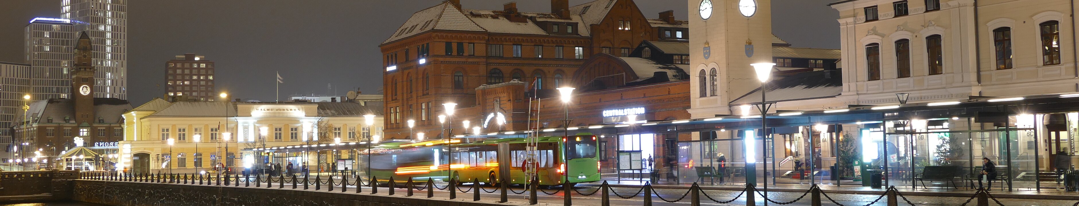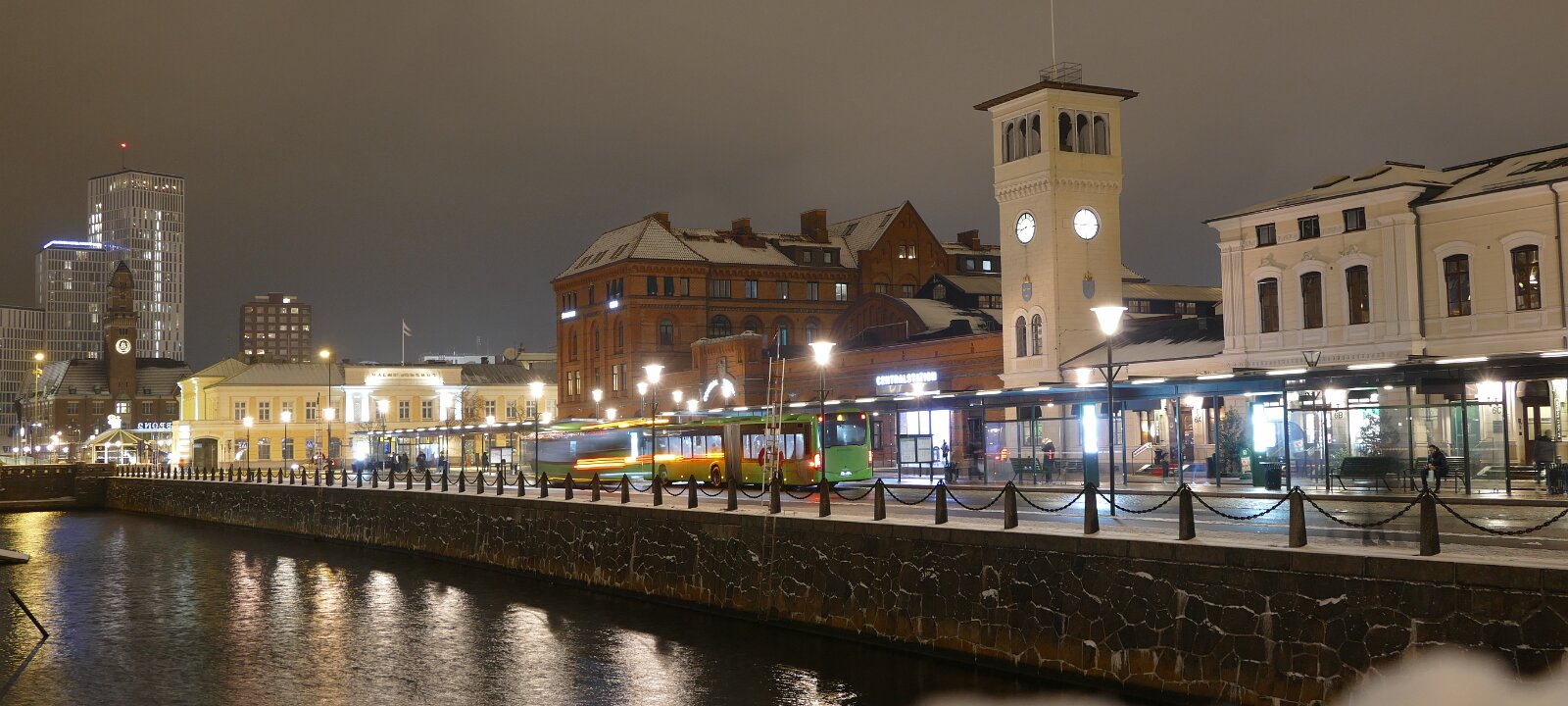 Obwohl der Tempomat auf 108 später auch mal auf 109 und in Danmark auch auf 110 stand war ich um ca. 18:45 Uhr in Malmö. Am dänischen Zoll war eine kleine Stockung von wenigen Minuten und der schwedische Zoll hat mich einfach durch gewunken, ja was ist denn nun los? In Danmark lag etwas Schnee, soweit man das in der Dunkelheit und im teilweise dichten Nebel erkennen konnte. Und in Malmö liegt auch eine feine Schicht Schnee, bei um den Gefrierpunkt.