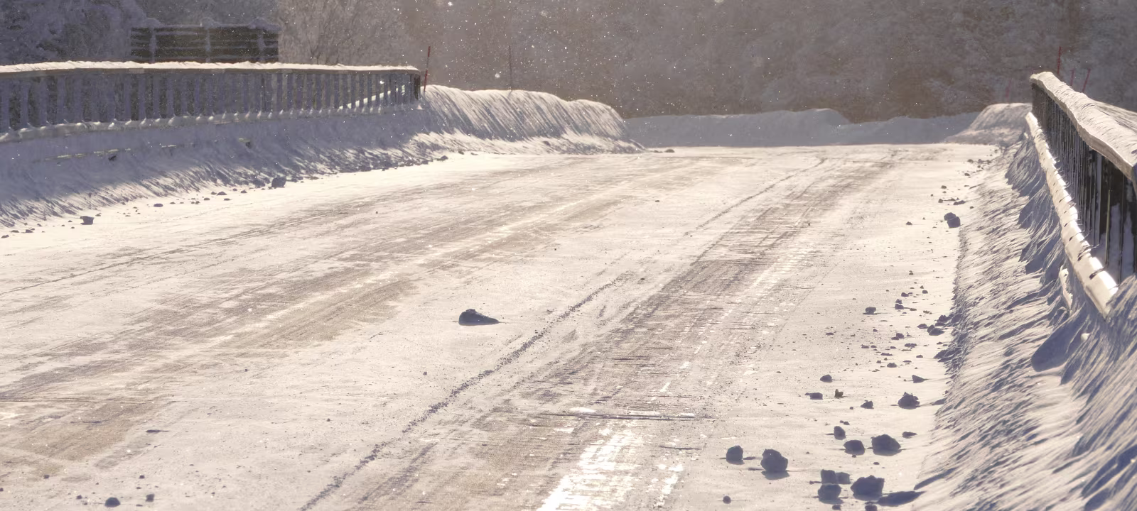 Geschenk #5: Da die Straßenführung nicht wirklich einfach nur kerzengerade von Süden nach Norden führt, sondern viele Haken schlägt, hat man die Sonne mal rechts im Seitenfenster, mal im Rückspiegel oder auch mal durch das Fahrerfenster. Wenn es im Winter einen Nachteil gibt, dann der, dass man wirklich nur an wenigen Stellen mal anhalten kann, um eine paar Fotos zu schießen. Es hat schon relativ viele Parkplätze (Buchten am Straßenrand), aber die liegen halt nicht alle so praktisch gelegen. Aber manchmal hat man Glück und man muss nur ein paar wenige Meter zurück laufen.