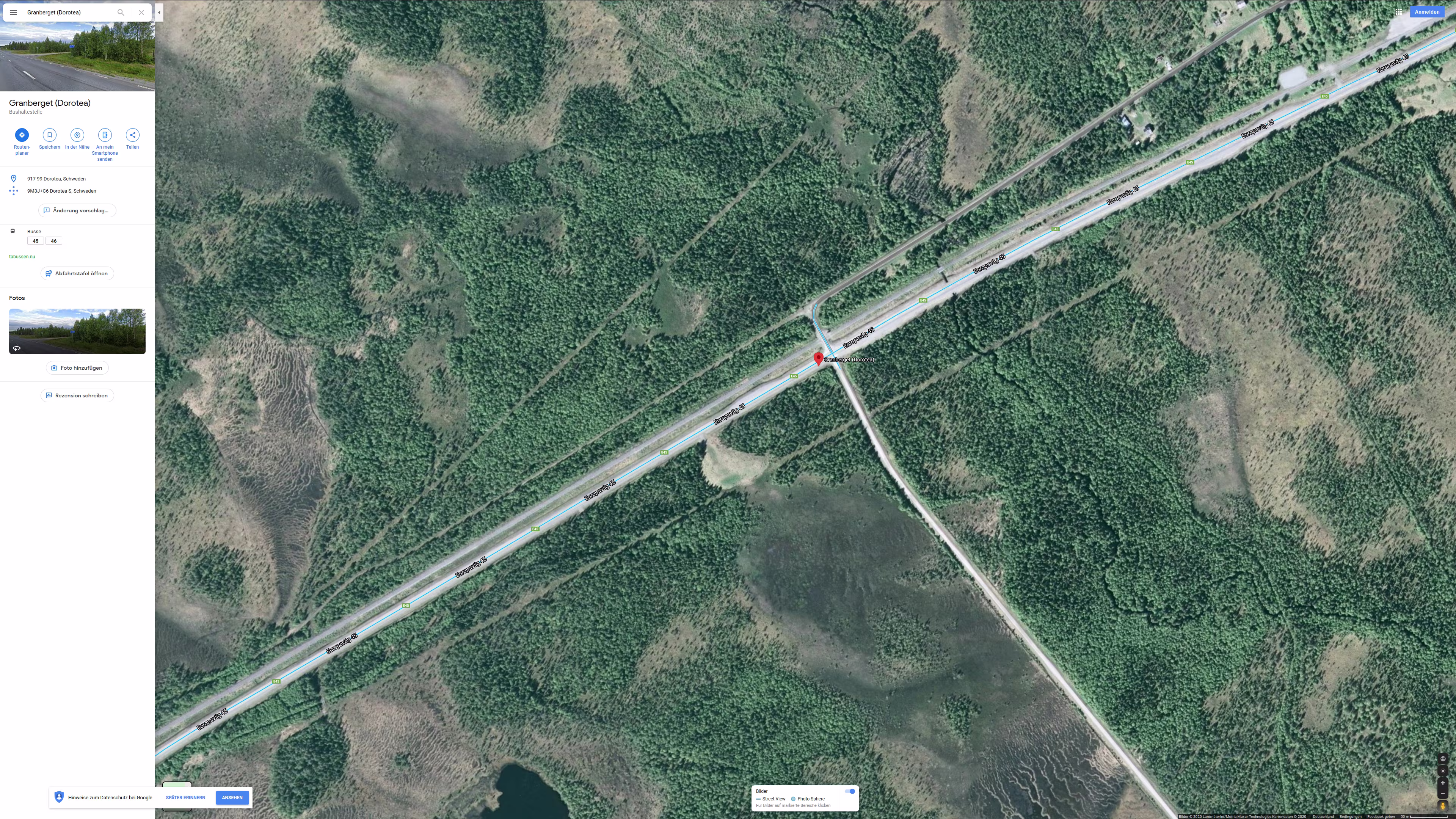 Geschenk #3: An einigen Stellen sieht man immer mal wieder die Bahngleise der Inlandsbanan und überquert sie auch mehrfach. Ich fahre also so dahin und bin an einer Stelle wo die Bahngleise für einige hundert Meter direkt und nah an der Straße entlang führen und es kommt plötzlich etwas großes aus dem Wald gefahren. Ein LKW, etwa mit Holz beladen konnte es nicht sein. Es war eine Lok mit zig Wagons, beladen mit Holz. Und das Glück konnte gar nicht größer sein, auf der anderen Straßenseite war ein Parkplatz den ich ansteuerte und den ganzen Vorgang filmen konnte. Mal sehen was da aufgezeichnet wurde.