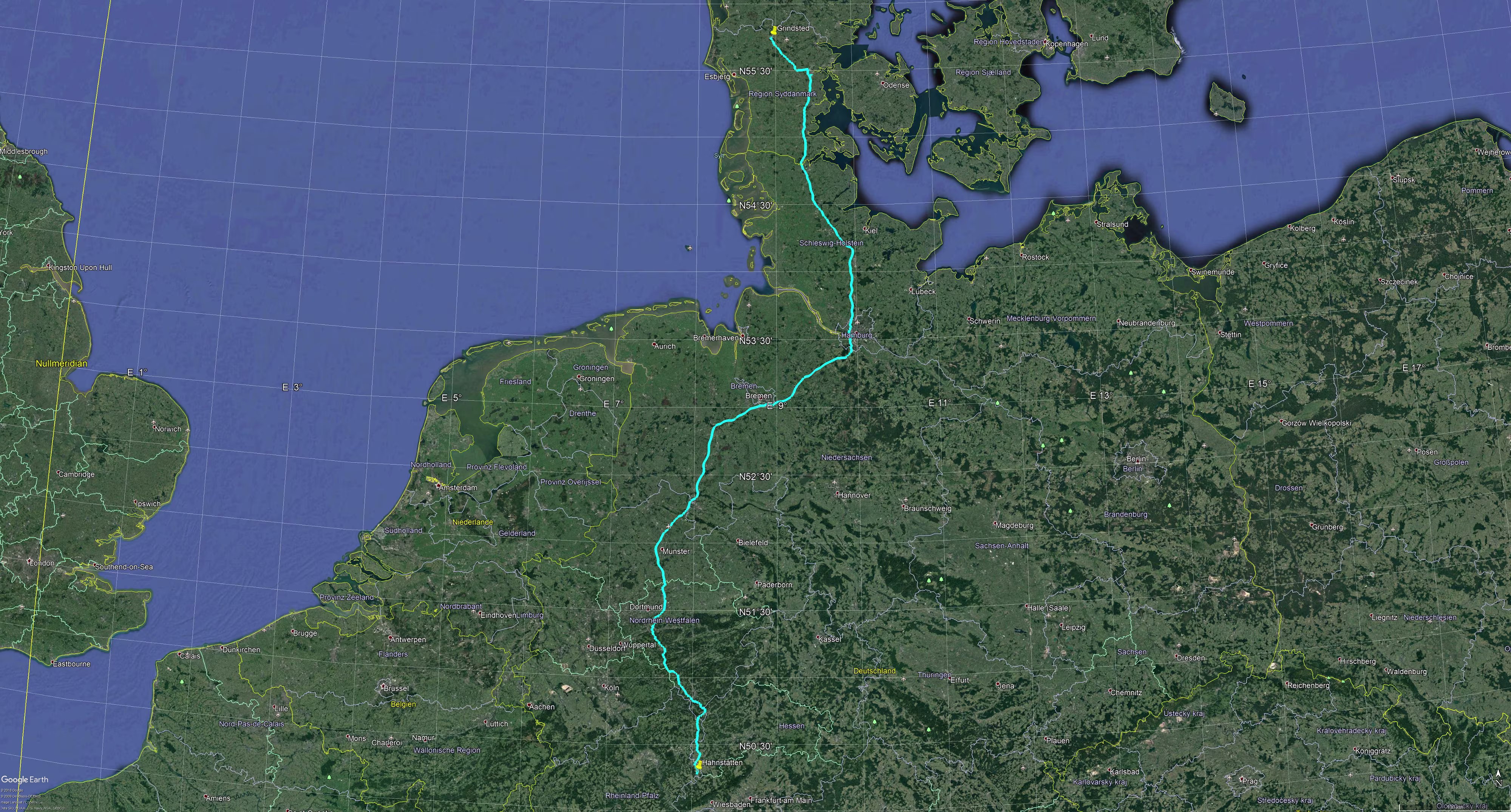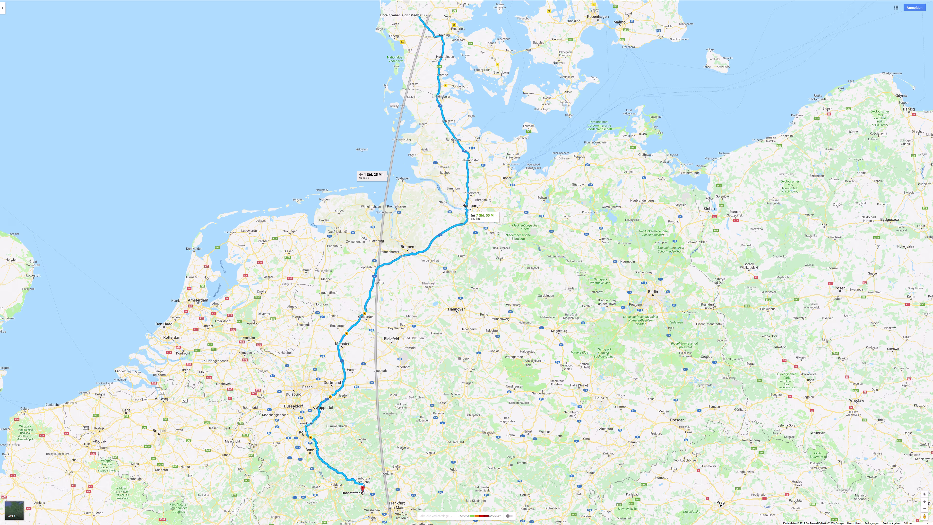 Bei Gejsing (Anschlussstelle Lunderskov) auf den Esbjergmotorvejen [E20], dann in Kolding V auf die [E45] und dann ab nach Hause.