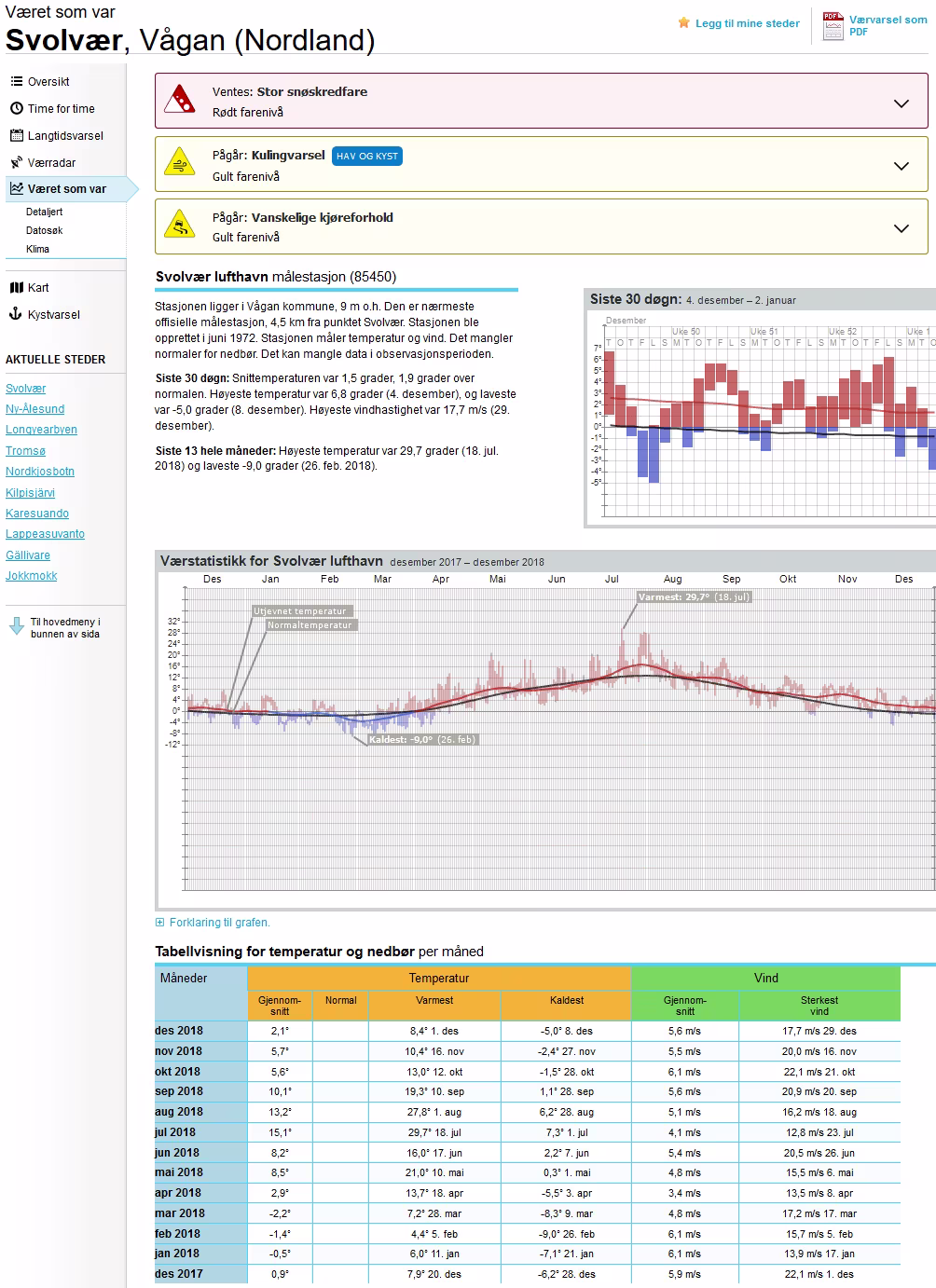 Værvarsel for - Svolvær, Vågan (Nordland)
